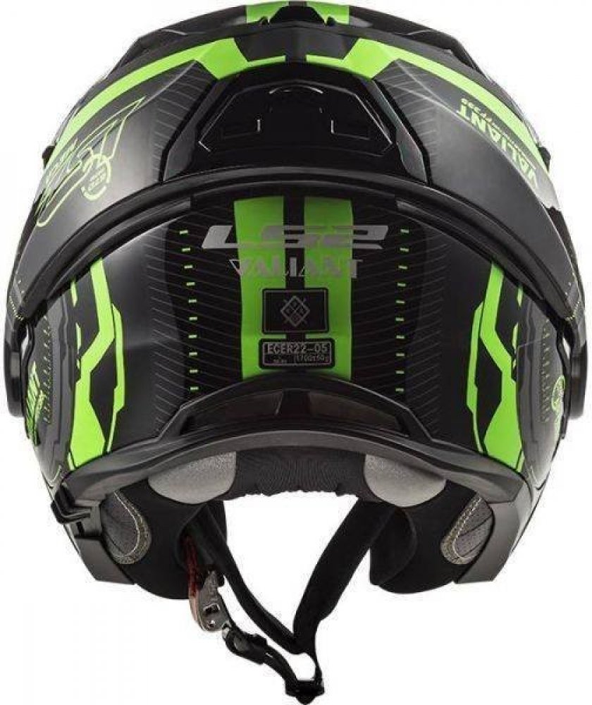 Moderní překlápěcí přilba s novým mechanismem překlápění a integrovanou sluneční clonou přináší líbivý avantgardní design a všechny výhody integrálních a otevřených helem v jednom modelu. Díky nové kinematice lze bradovou část včetně plexi jediným pohybem ruky překlopit úplně dozadu a z plnohodnotné integrální helmy se Valiant během okamžiku změní v pohodlnou otevřenou přilbu. Čiré Anti-UV plexi s úpravou proti poškrábání je snadno vyjímatelné bez potřeby nářadí, a díky folii Pinlock Max Vision (v ceně) se nemlží ani v obtížných podmínkách. Plně vyjímatelný a pratelný hypoalergenní interiér. Příprava pro Bluetooth LS2 Ride Linkin Pal. Perfektní zpracování a vynikající poměr kvality a ceny. Přilba je homologovaná jako integrální i otevřená.
