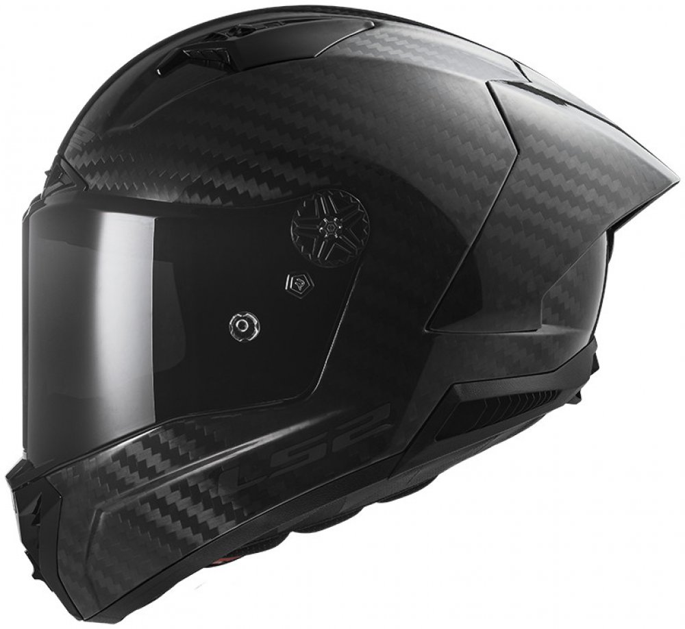 Karbonová závodní a sportovní helma s aerodynamickým spoilerem, odolná skořepina z karbon-aramidových vláken, velké zorné pole, plexi Racing s úpravami Anti-fog / Anti-scratch / Anti-UV, nosní a bradový spoiler, antimikrobiální interiér s obsahem stříbrného vlákna, zapínání dvojitými D-kroužky, 1400g, folie PINLOCK MAX Vision ZDARMA