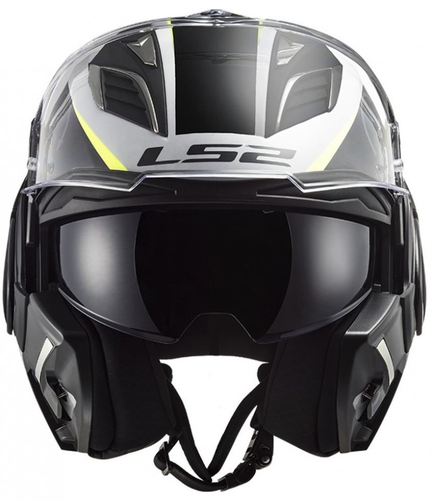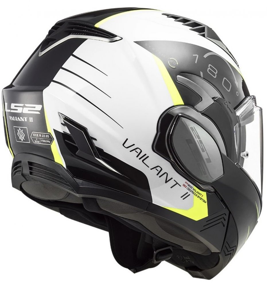 Motocyklová helma LS2 Valiant II je nejvšestrannější přilbou na trhu, která v sobě ideálně spojuje výhody integrálních a otevřených helem. Návrháři LS2 vzali ověřený koncept úplného překlopení brady a navrhli zcela nový mechanismus, díky kterému je Valiant II v současnosti nejkompaktnější a nejlehčí helmou ve své kategorii. S přilbou LS2 VALIANT II si můžete vychutnat to nejlepší z obou světů - můžete se těšit z plné ochrany integrální přilby když potřebujete, a z volnosti a příjemného pohodlí otevřených přileb když chcete. To vše navíc s nízkým aerodynamickým odporem. Přepracovaná kinematika překlápění umožňuje snadné překlopení brady jednou rukou se současným plně automatickým otevřením plexi. Integrovaná sluneční clona umožňuje jezdit bez slunečních brýlí a zvyšuje vaši bezpečnost, když se světelné podmínky náhle změní, například v tunelu nebo v lese. Plexi s úpravou proti poškrábání a mlžení lze navíc doplnit Anti-fog folií Pinlock Max Vision, která je v ceně. Přilba je homologovaná jako integrální i jako otevřená.