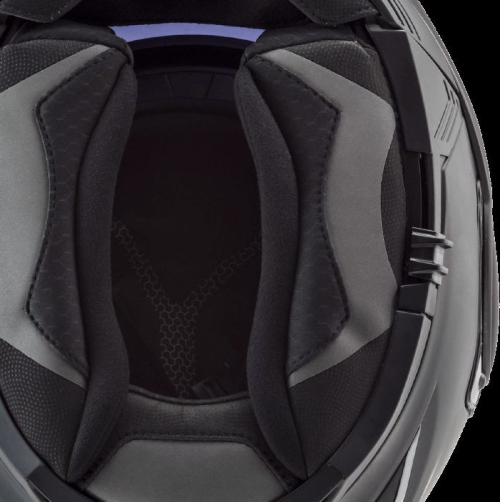 Interiér je vyroben z komfortního, antialergeního materiálu, který je laserem přesně vyřezáván a umožňuje i pohodlné nošení dioptrických brýlí. Je plně vyjímatelný a pratelný. Bradový deflektor lze samostatně vyjmout.
