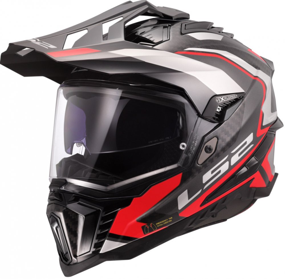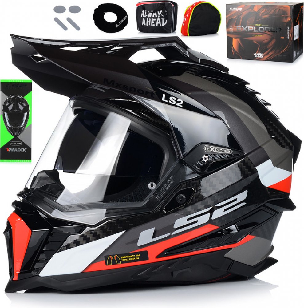 Karbonová přilba Explorer C je špička v nabídce enduro helem LS2, a jedna z nejlepších offroadových helem pro náročné jezdce na velkých endurech. Přilba nejnovější generace s moderními technologickými prvky nabízí nízkou hmotnost a vysokou bezpečnost. Integrovaná sluneční clona zaručuje příjemnou a bezpečnou jízdu ve dne, za šera i v noci. Vynikající větrání zajišťuje účinný ventilační systém s novým přívodem vzduchu mezi výstelkou a interiérem, umístěný v přední části přilby.