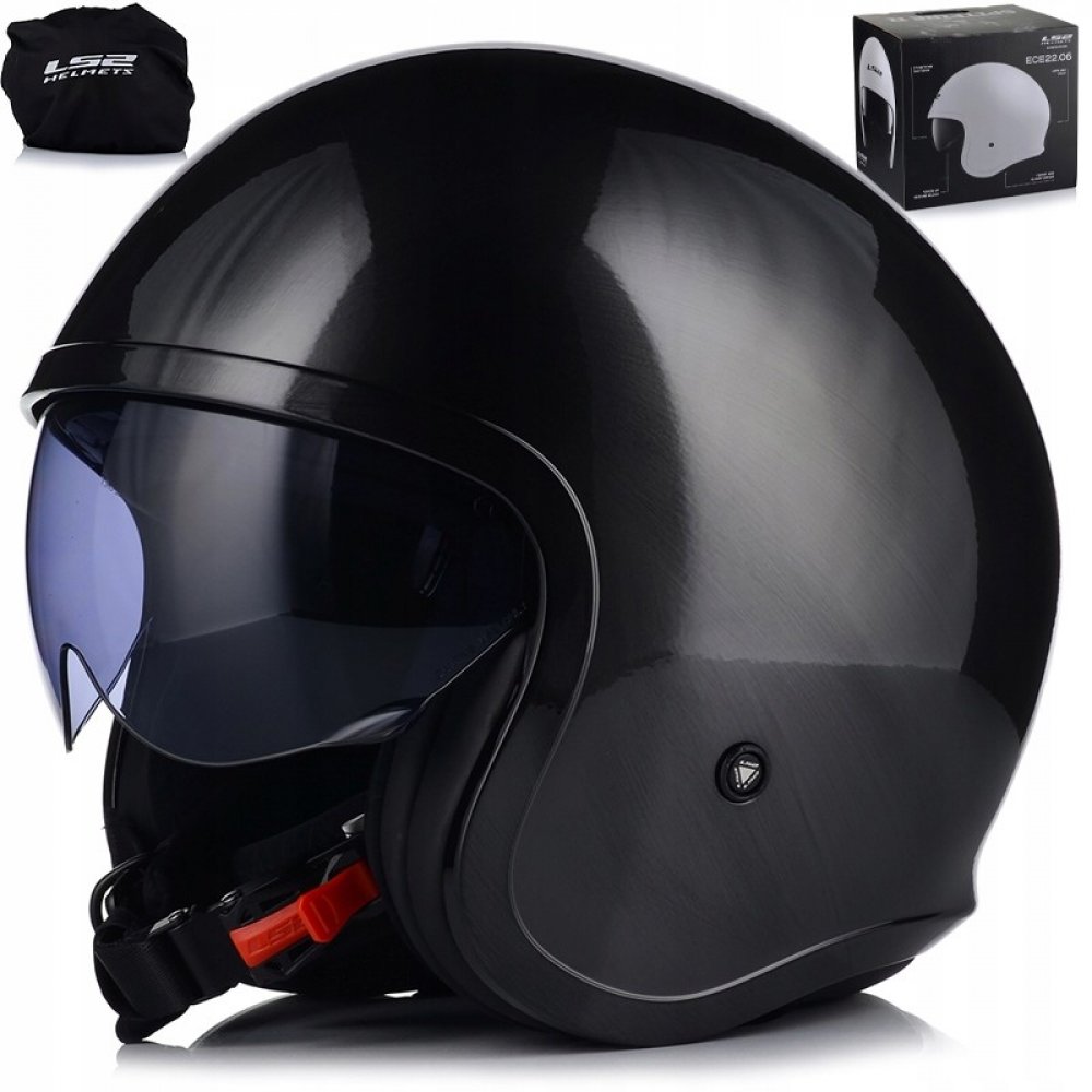 Moderní a bezpečná motocyklová přilba LS2 OF599 SPITFIRE, ideální na motocykly typu chopper, či cruiser. Helma má zabudovanou sluneční clonu v černé barvě s 2úrovňovým nastavením. A navíc prostor pro montáž brýlí.