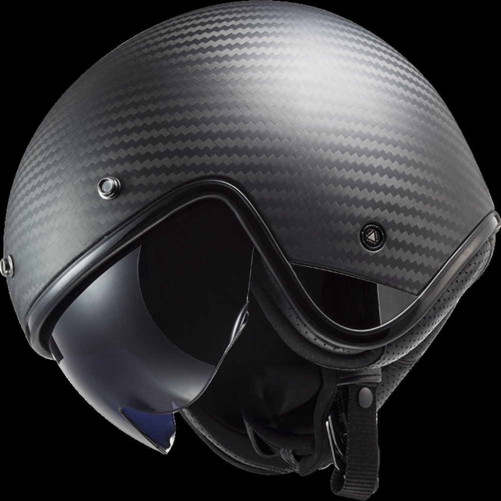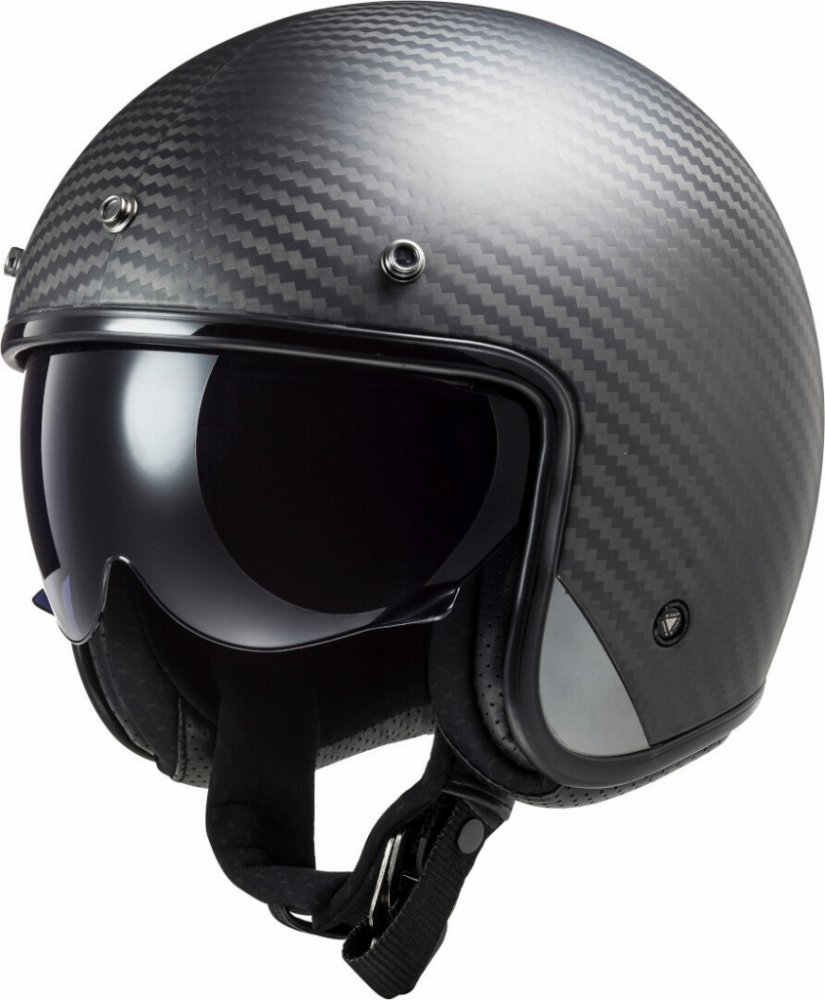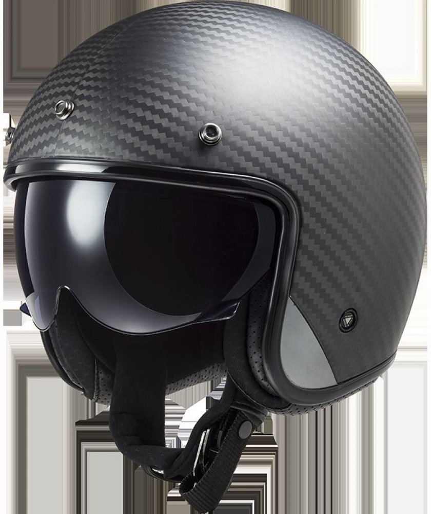 Lehká otevřená karbonová helma v módním luxusním neo-retro vzhledu. Ideální pro custom motocykly, café racery, choppery, veterány, retro skútry a další, pro cestování i město. Integrovaná sluneční clona chrání oči před ostrým sluncem. Extrémně lehká skořepina z křížově tkaných širokých uhlíkových vláken dává přilbě mimořádně vysokou odolnost proti nárazu, exkluzivní vzhled a hmotnost pouhých 850 g...