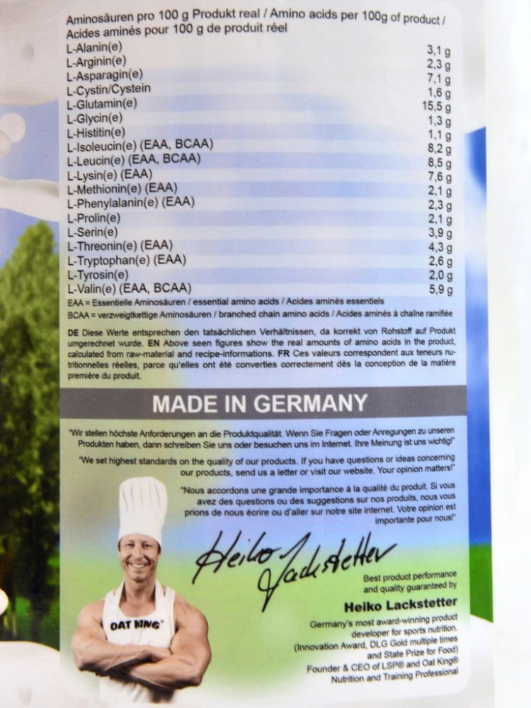 Navíc kozí syrovátkový protein německé kvality má velmi dobrý profil aminokyselin - obsahuje celkem 41,5% esenciálních aminokyselin a 22% BCAA.