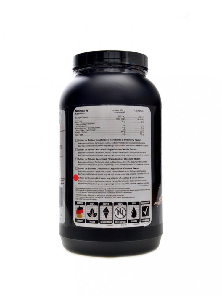 Sojový Protein Isolate 90% 1000 g získávaný ze sojových bobů je oddělen od tuků a sacharidů. Jeho vysoký obsah bílkovin zajišťuje svalstvu přísun potřebných živin. Protein je vhodný pro ty, kteří špatně snáší syrovátkové výrobky. Nejčastěji se na tento sojový doplněk zaměřují vegetariáni a vegani. Sojový protein se dá klidně kombinovat s živočišným proteinem. Sojové bílkoviny mají bohatý zdroj ami...