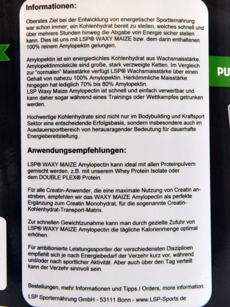 Hlavním cílem při vývoji energetické sportovní výživy bylo vždy, najít sacharidy , které lze snadno využívat několik hodin . Toho bylo dosaženo pomocí LSP ® kukuřičného 100% čistého amylopektinu.