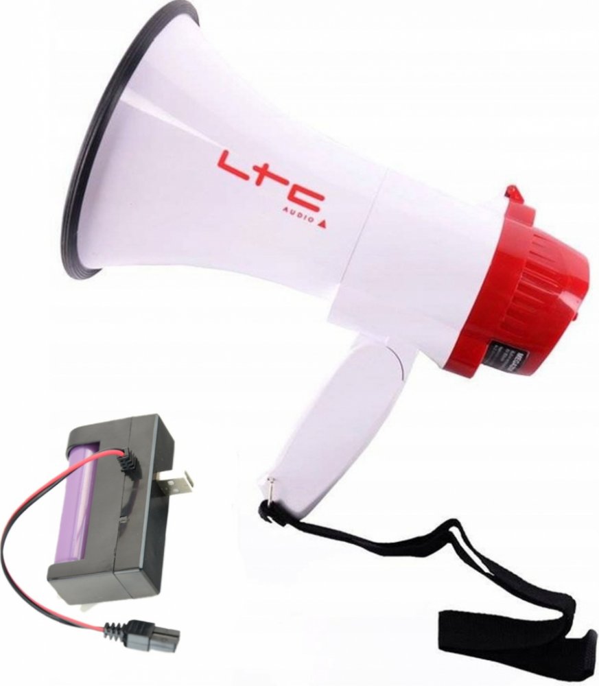 Megafon LTC 20W – hlasitý, přenosný megafon s baterií, mikrofonem, nahráváním a alarmovou sirénou!