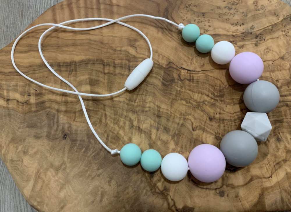 Kojící korále z nové kolekce v jemných pastelových barvách, které se hodí k veškerému oblečení. Kombinaci barev a materiálů prosím uveďte do Poznámky v objednávce.