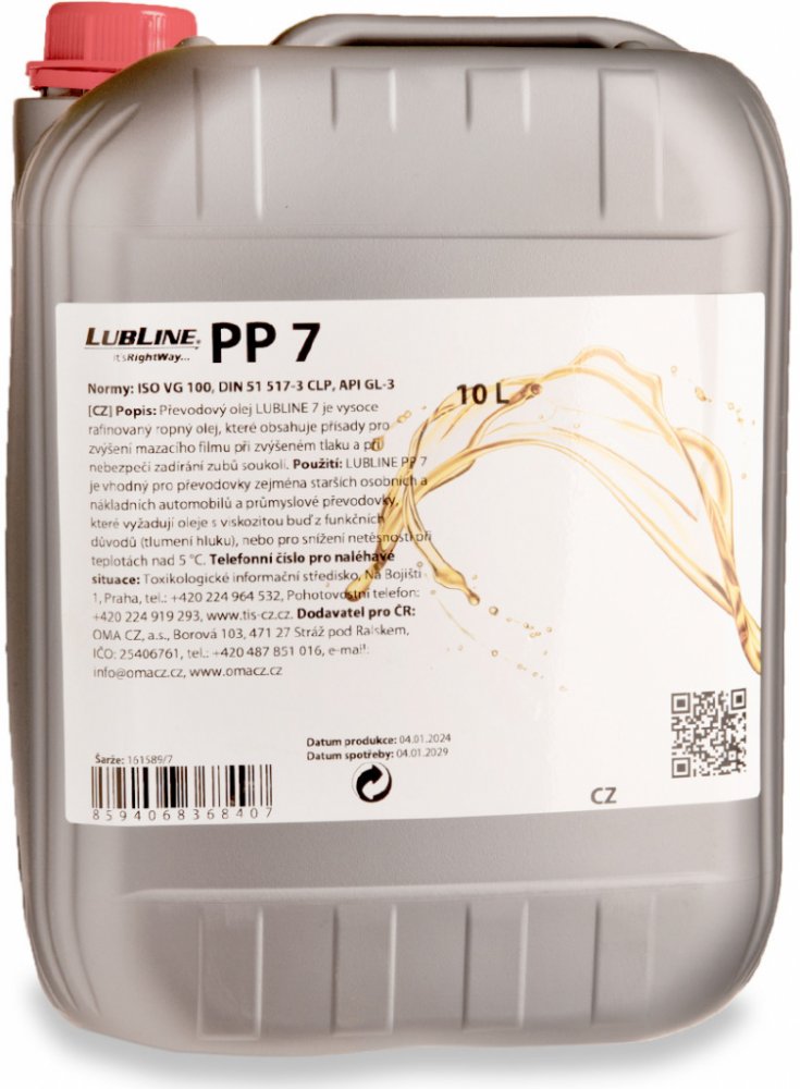 LUBLINE PP 7 je vysoce rafinovaný převodový olej, obohacený o speciální přísady pro zvýšení mazacího filmu při zvýšeném tlaku a ochraně proti zadírání zubů soukolí.