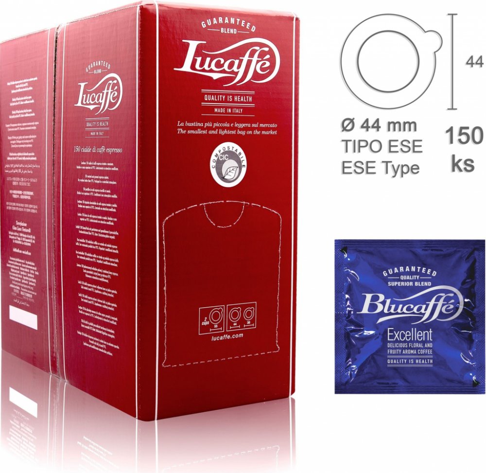 100 % Arabica a směs kávových odrůd, aroma čokoláda, původ Itálie, místo pražení Itálie, hmotnost balení 1050 g, 150 porcí, bez alergenů (BLUCAFFEPODOVÁKÁVA150KS)