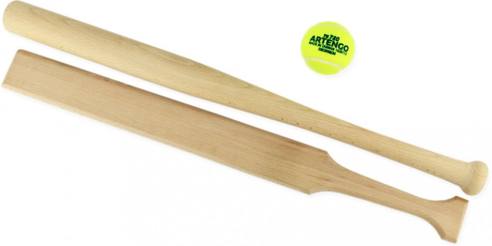 Originální dřevěné baseballové pálky od italské rodinné firmy Lucio Londero, která se více jak 50 let specializuje na produkty ze dřeva - kroket, petanque, baseball a další hry. Sada obsahuje jednu kulatou baseballovou pálku, jednu plochou a tenisový míček. Nedoporučuje se používat v dešti. Sada je balena v síťce.