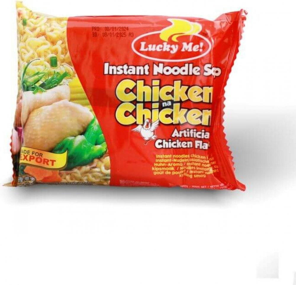 LUCKY ME je přední filipínský výrobce instantních potravin, který se specializuje na výrobu a distribuci instantních polévek a nudlových jídel. Tato značka patří společnosti Monde Nissin a od svého uvedení na trh se stala jednou z nejoblíbenějších značek instantních nudlí na Filipínách a v dalších zemích. Díky své autentické chuti a praktické přípravě si získal přízeň milionů spotřebitelů.Hlavní produkty:✅ Instantní nudle – Tradiční filipínské chutě, jako jsou Pancit Canton, La Paz Batchoy či Bulalo.✅ Polévky v kelímku – Rychlé a chutné řešení pro milovníky nudlových polévek.✅ Klasická filipínská jídla – Produkty inspirované domácí kuchyní Filipín.Certifikace: ISO 9001 – Certifikace systému řízení kvality. ISO 22000 – Certifikace bezpečnosti potravin. HACCP – Systém řízení bezpečnosti potravin.Kontaktní informace: Webová stránka: LUCKY MELUCKY ME se zaměřuje na přinášení autentických filipínských chutí do domácností po celém světě, přičemž spojuje tradiční receptury s moderním životním stylem. Klasická kuřecí chuť: Jemná a uspokojivá příchuť kuřecího vývaru. Jemné instantní nudle: Rychle se připravují a jsou ideální pro rychlý teplý pokrm.⏰ Ultra rychlá příprava: Stačí zalít horkou vodou, ideálně na cesty nebo do práce jako rychlý oběd, večeře či svačina.Základní složky: Pšeničná mouka, rostlinný olej (palmový olej, extrakt ze zeleného čaje), sůl.Přísady a dochucovadla: Regulátory kyselosti (E621, E631, E627), whey prášek (obsahuje mléko), kukuřičný škrob (obsahuje siřičitan), cukr, kuřecí příchuť 0,98% (obsahuje pšenici, sójový, vejce.Zelenina a pepř: Česnek (obsahuje siřičitan), cibule (obsahuje siřičitan), pažitka, bílý pepř.Stabilizátory: Regulátor kyselosti (E500, E501), zvlhčovadlo (E452), zahušťovadlo (E466).Produkt obsahuje lepek , pšenici , vejce , mléko , sóju a siřičitan .Může obsahovat stopové prvky ryb , korýšů , měkkýšů a sezamu .Energie: 1878 kJ / 448 kcalTuky: 18 g, z toho nasycené mastné kyseliny 7,8 gSacharidy: 59 g, z toho cukry 1,9 gBílkoviny: 12 gSůl: 6,8 gZalijte nudle vařící vodou.Nechte odstát pod poklicí po dobu 3 minut.Podávejte teplé.Tipy: Přidejte čerstvou zeleninu nebo vajíčko pro bohatší a výživnější chuť. Je to perfektní jídlo na cesty nebo do práce.