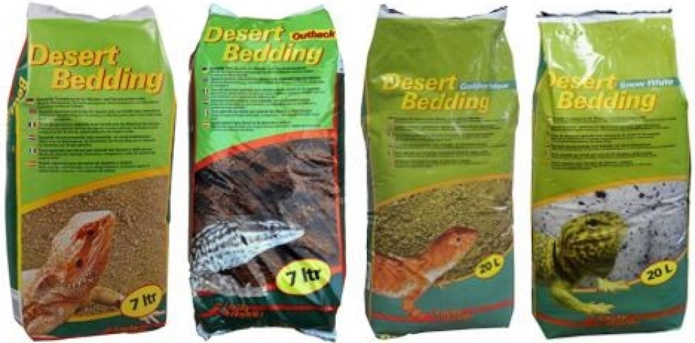 Desert Bedding z různých pouštních a savanových regionů světa je k dispozici v různých barevných provedeních v závislosti na tom, ze které oblasti pochází. Můžete volit mezi přírodním (Desert Bedding), červeným (Outback Red), žlutavým (Golden Yellow) a bílým (Snow White) substrátem.