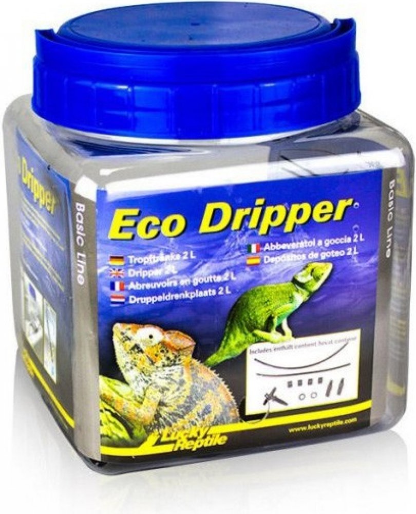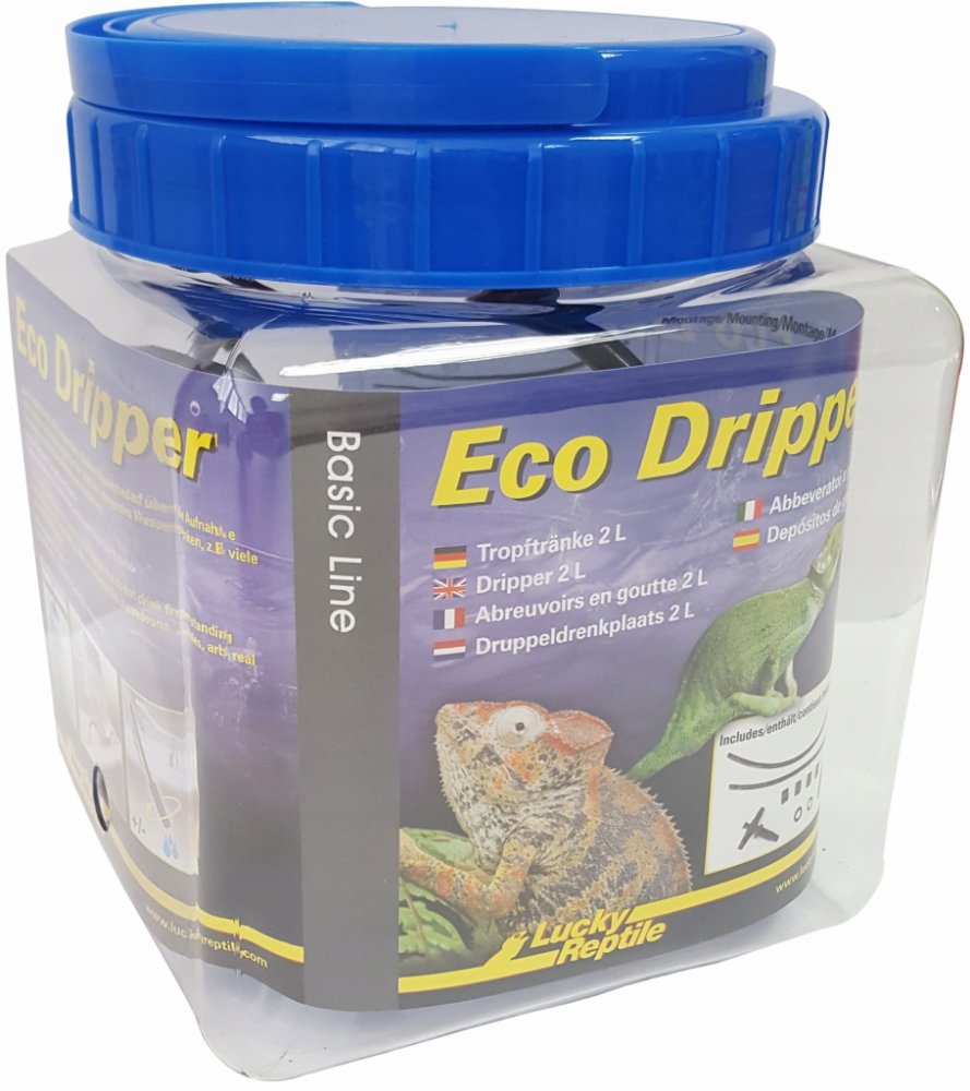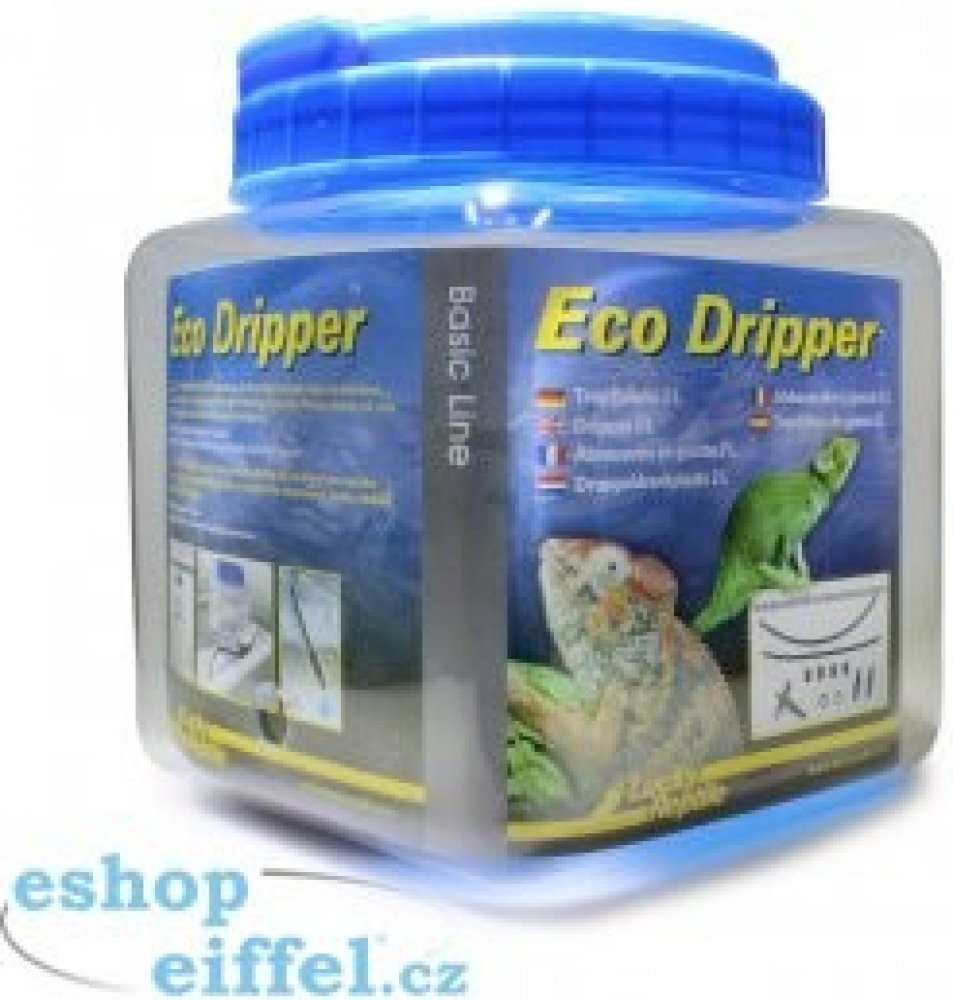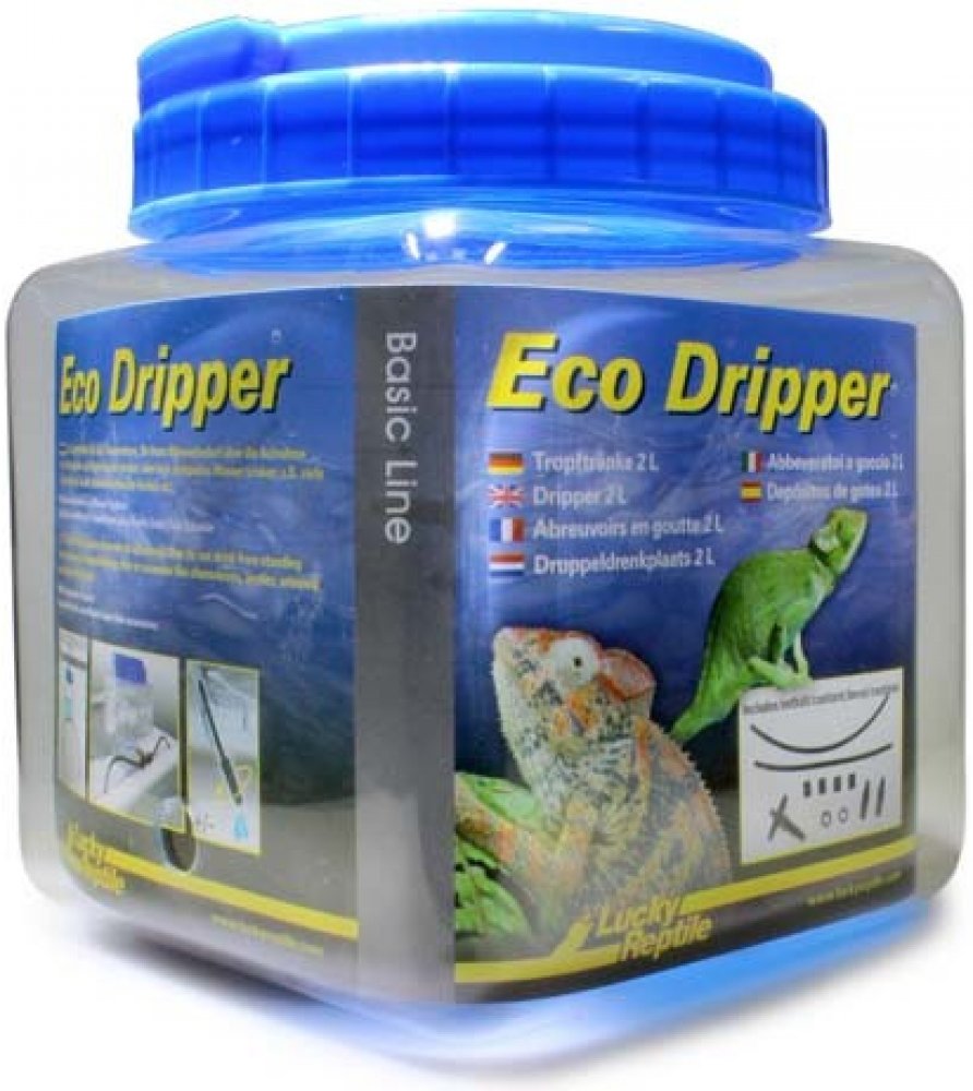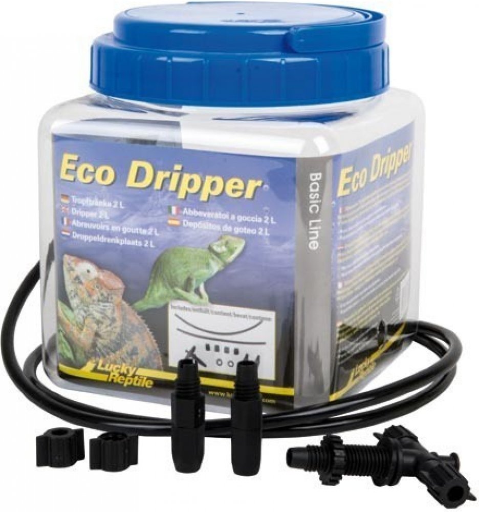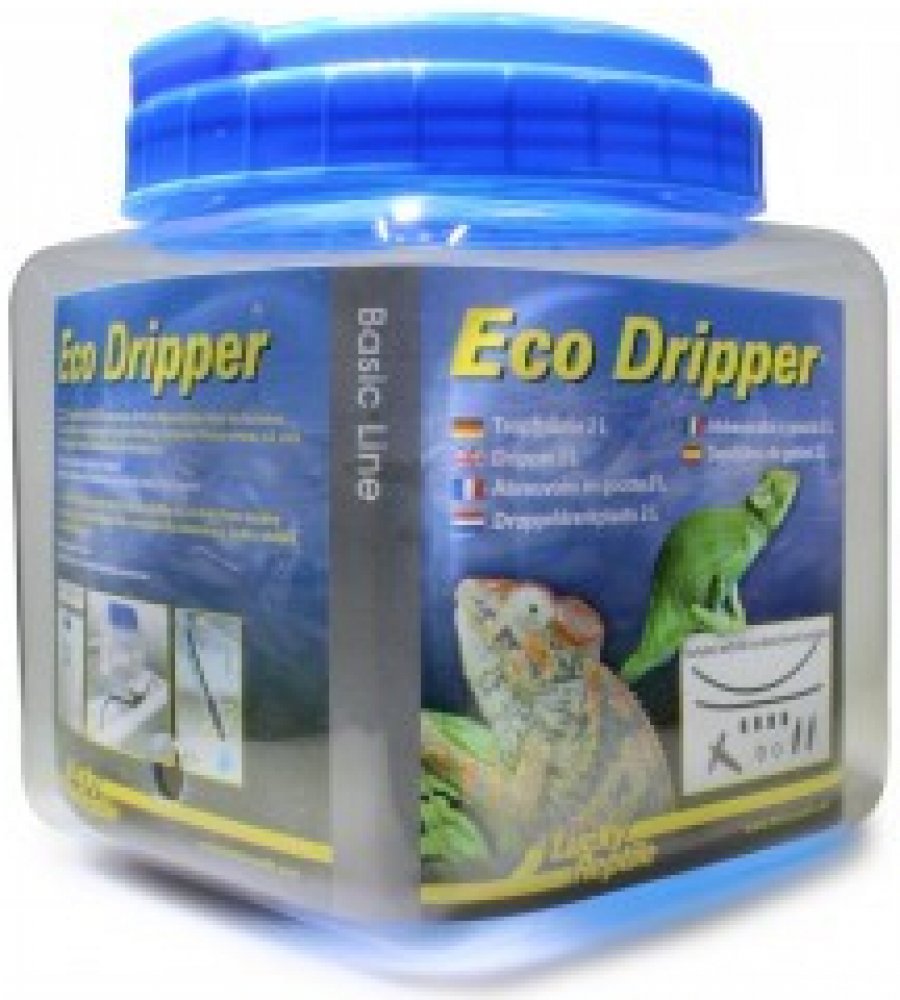 Eco Dripper obsahuje 2 kapátka, která lze rozvést do dvou terárií, nebo ponechat v jedné větší nádrži. Je také možné napojit více dripperů pomocí rozšiřujících součástí pro Super Rain II.