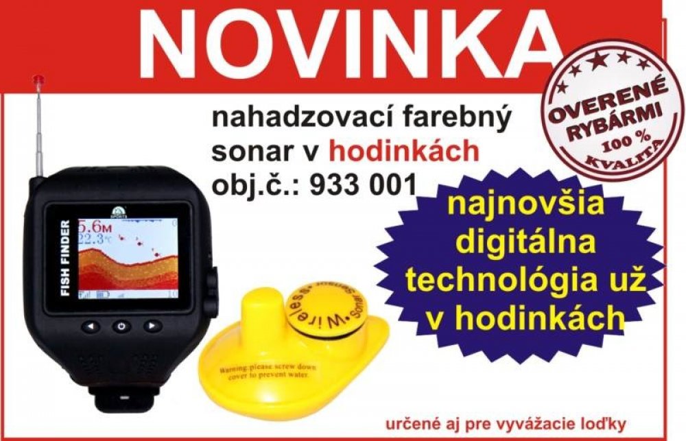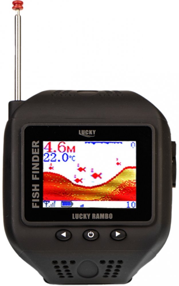 Zobrazení - funkce: hloubka vody teplota vody Indikace stavu baterie Indikace připojení sondy Horní rozsah zoomu hladina vody Malý symbol ryby s hloubkou Velký symbol ryby s hloubkou Reálné zobtrazenie ryb - "Vranka" kontura dna Dolní rozsah zoomu citlivost Možnost spustit simulátor Otočení obrazu o 90 ° zoom zvětšení hloubkový alarm Alarm ryb šetření energie Balení obsahuje: Sonar 1ks Bezdrátová sonda Lithiová baterie CR2032 3.7V nabíjecí akumulátor Nabíječka autonabíječka USB nabíjecí kabel Manuál Specifikace napájení sonaru 3,7V nabíjecí lithiový akumulátor napájení sondy Baterie CR2032 displej 1,77 "TFT barevný s rozlišením 128x160 pixelů hloubkový dosah 0,6 - 45 metrů Úhel snímání 90 ° Frekvence sonaru 125kHz Frekvence bezdrátového přenosu 433,92MHz Pracovní dosah 60metrov