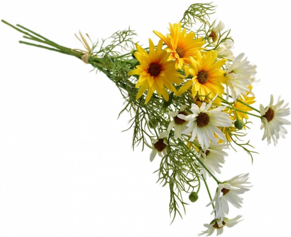 Vyzařujte krásu a eleganci s naši kyticí Luční kvítí kopretiny žluté 70 cm. Tato exkluzivní kytice, která obsahuje celkem 4 umělé květiny, z nichž 2 jsou krásných žlutých kopretin a 2 květiny bílých kopretin, je dokonalým doplňkem pro vaši domácnost. Každá kopretina se pyšní 7 květy, což dodává kytici nádherný detail. S výškou 70 cm tato kytice bude okamžitě přitahovat pohledy každého návštěvníka. Vyrobená z kvalitního plastu a textilu, tato kytice je trvanlivá a zachová si svůj okouzlující vzhled po dlouhou dobu.