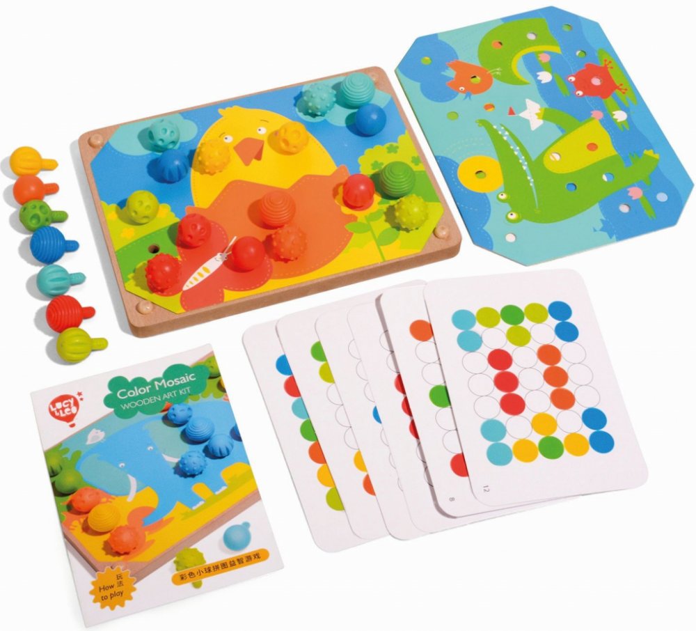 Mozaika a vyšívání je herní set pro děti rozvíjející jemnou motoriku a tvořivé myšlení.