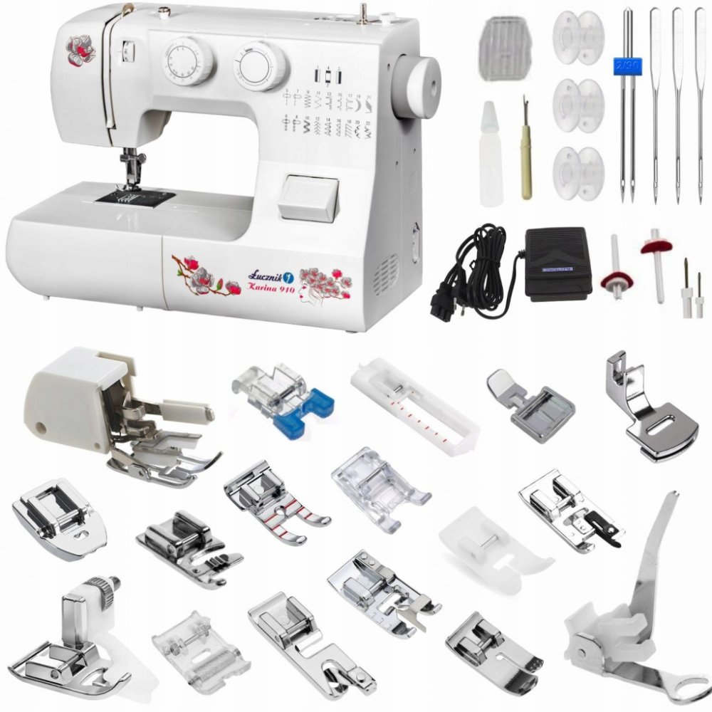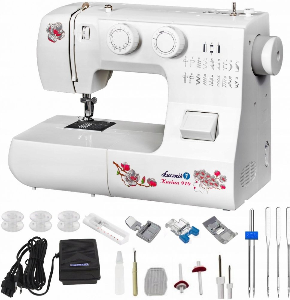 Šicí stroj Lucznik 910 Karina je moderní šicí stroj do každé domácnosti. Šicí stroje Lucznik 910 Karina jsou šicí stroje vybavené 22 programy, kyvným CB chapačem, 4-krokovou poloautomatickou knoflíkovou dírkou, overlockovými stehy, volným ramenem, plynulou regulací délky stehu, zpětným šitím, možností šití dvojjehlou a řadou dalších užitečných funkcí. V šicím mechanismu jsou použity kovové součást...