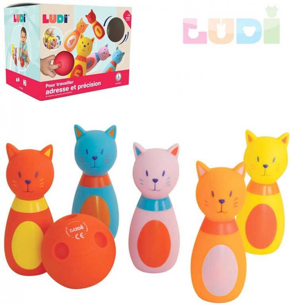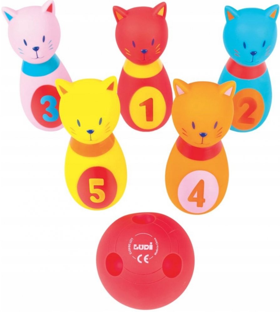 LUDI baby bowling kočičky set 5 soft kuželek s koulí