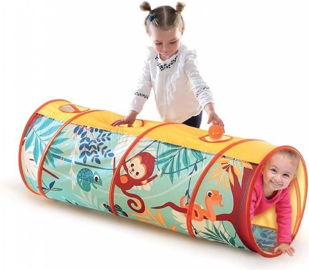 Hrací tunel s krásným potiskem zvířátek z džungle je vhodný pro hraní doma i venku. Pro větší zábavu má tunel 3 otvory, kterými se např. mohou dovnitř vhazovat míčky. Tunel se snadno skládá i rozkládá. Když jej nepoužíváte, jednoduše jej složíte do plochého tvaru do tašky, ve které je dodáván. Prolézací tunel poskytuje bezpečné prostředí pro cvičení a zkoumání, je skvělý pro rozvoj hrubé motoriky ...