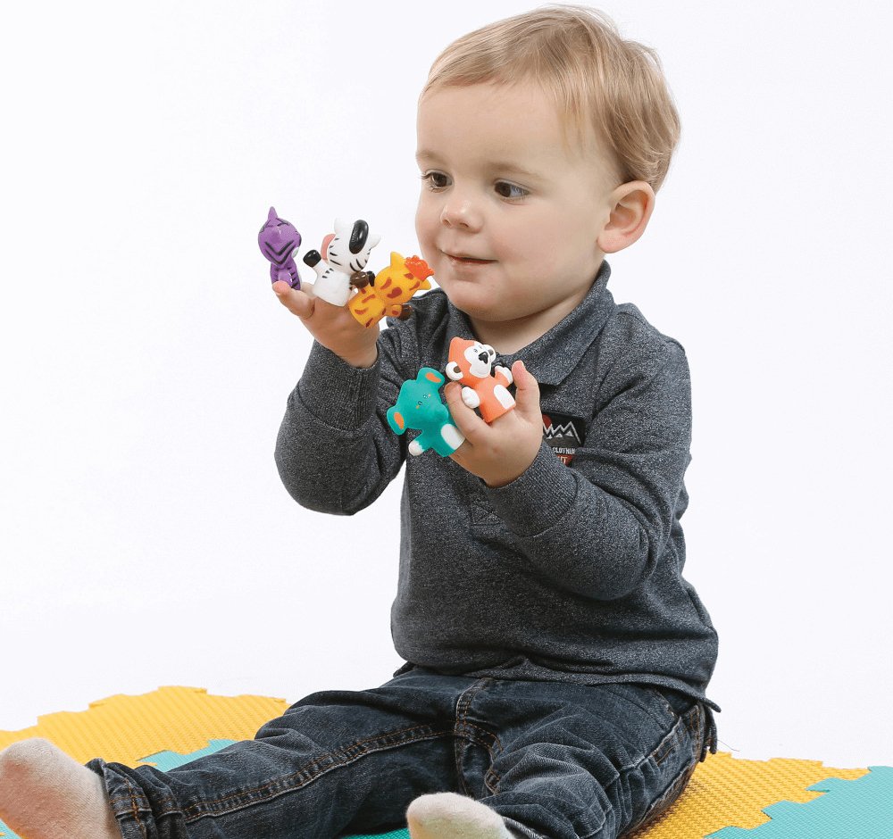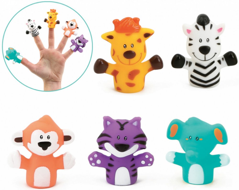 Sada originálních prstových maňásků nabízí skvělý způsob, jak si užít vyjímečné chvíle s vaším dítětem, jako je čas koupání nebo povídání před spaním. Vymýšlejte si spolu příběhy o pěti zvířecích kamarádech a rozvíjejte tak zábavným způsobem představivost a slovní zásobu dítěte. Nejdříve se naučí poznávat barvy a jména zvířat, ve starším věku už si maňásky nasadí na vlastní prsty a bude vymýšlet vlastní příběhy.