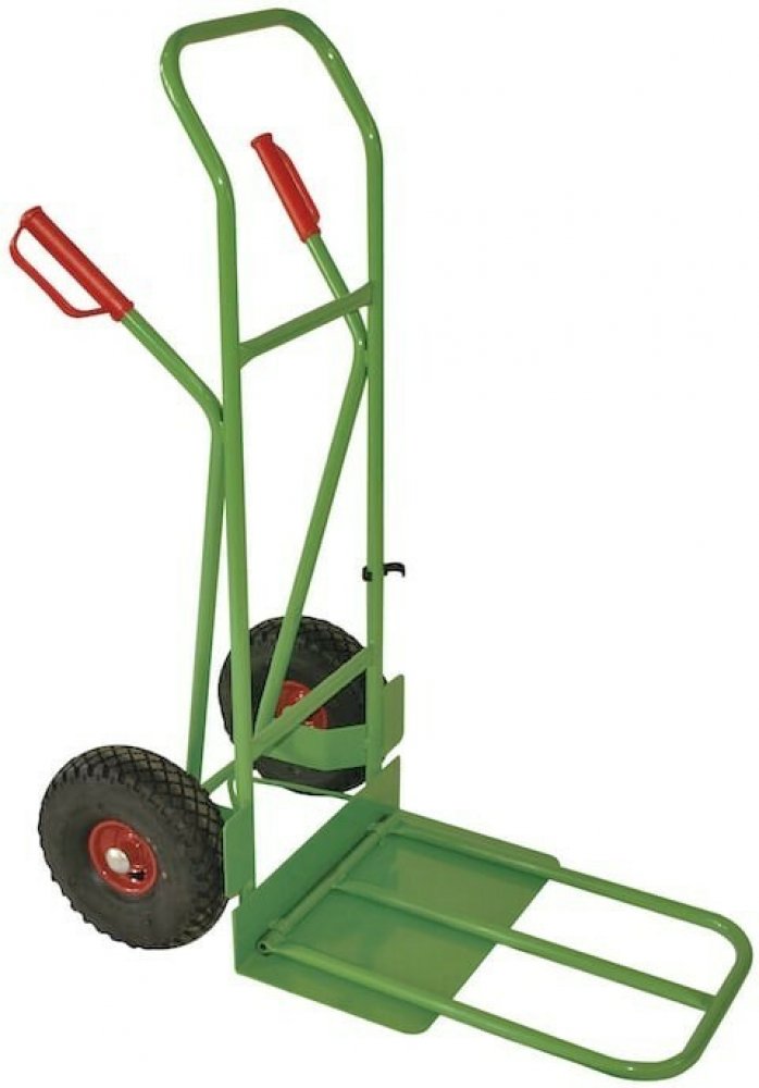 Robustní rudl M30-045A s extra velkou sklopnou lopatou je ruční dvoukolový vozík (zvaný také jako rudlík či rudla) zajímavý svou variabilitou a velikostí sklopené nakládací plochy. Náklad totiž můžete vzít buď na základní krátkou lopatu o rozměrech 500×275 mm (dobře se tak naberou např. skříně nebo domácí spotřebiče) nebo lopatu sklopíte a získáte tak velkorysou plochu 385×620 mm pro přepravu krabic, objemných nákladů, pneumatik, atp. Uveze náklad do hmotnosti 300 kg. Má bytelnou svařovanou konstrukci z ocelových trubek 25×2 mm a jeho lopata je z plechu tl. 4 mm. Oska kol je z ocelové kulatiny průměru 20 mm. Jedná se o velmi kvalitní produkt vyráběný v České republice! Dlouhou životnost a bezproblémové používání podtrhují velká bezdušová bantamová (nafukovací) kola 300 mm s pláštěm zn. DELI. O hladký pohyb rudlu M30-045A se postarají jehlová ložiska vsazená do kovového disku. Samozřejmostí pak jsou ochranná držadla z materiálu příjemného na dotek, odolná povrchová úprava práškovou vypalovanou barvou a pevné zajišťovací kloboučky na kola.