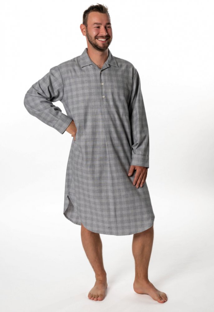Pánská noční košile z kvalitního flanelu. Košile je propínací na 3 knoflíčky, s kapsičkou a rukávy do manžet. Délka košile je lemovaná do obloučku. Pokud hledáte noční košili, tak ta naše, je ta pravá.