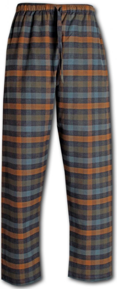Pánské dlouhé domácí kalhoty, vhodné na spaní i na běžné nošení na doma. Příjemný volný střih z teplého kvalitního pestře tkaného flanelu. V pase na gumu a šňůrku. Pohodlné kapsy na bocích.