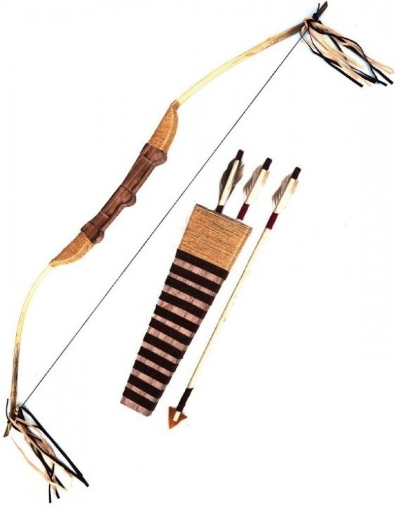 Velikost luku cca 80cm, šípy mají měkký kožený hrot
