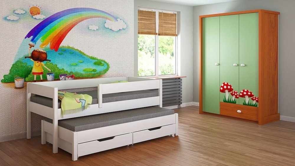 Dětská kvalitní postel se zábranou a přistýlkou, je bezpečná a velmi praktická - zaručuje dostatečnou stabilitu jak pro děti tak i pro rodiče. Díky šikovně uskladněné přistýlce se již nemusíte starat, kam uložíte návštěvu Vašeho dítěte.
