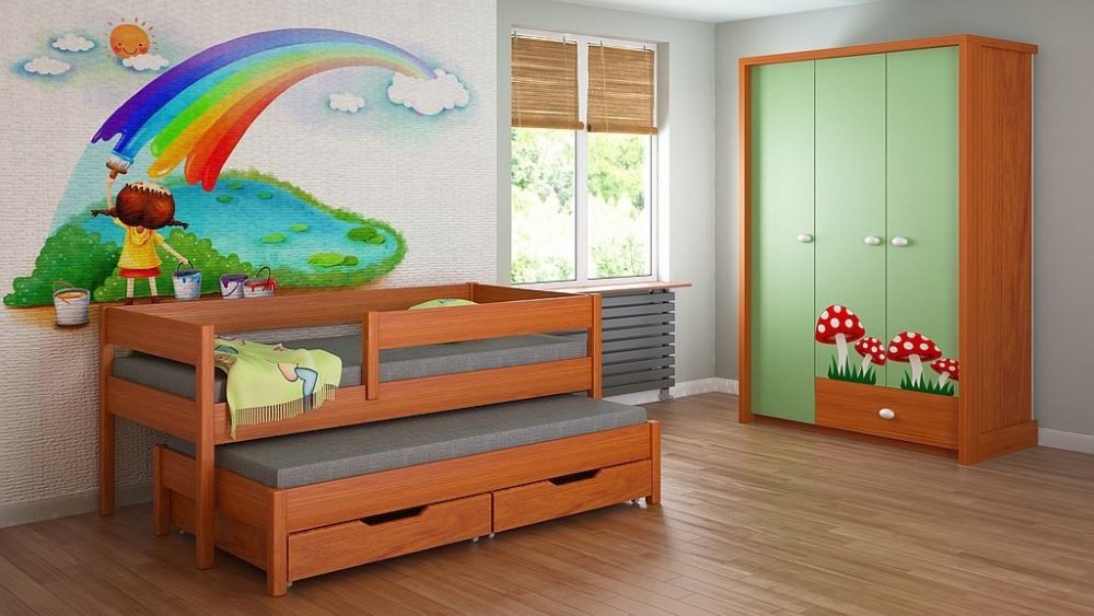 Dětská kvalitní postel se zábranou a přistýlkou, je bezpečná a velmi praktická - zaručuje dostatečnou stabilitu jak pro děti tak i pro rodiče. Díky šikovně uskladněné přistýlce se již nemusíte starat, kam uložíte návštěvu Vašeho dítěte.
