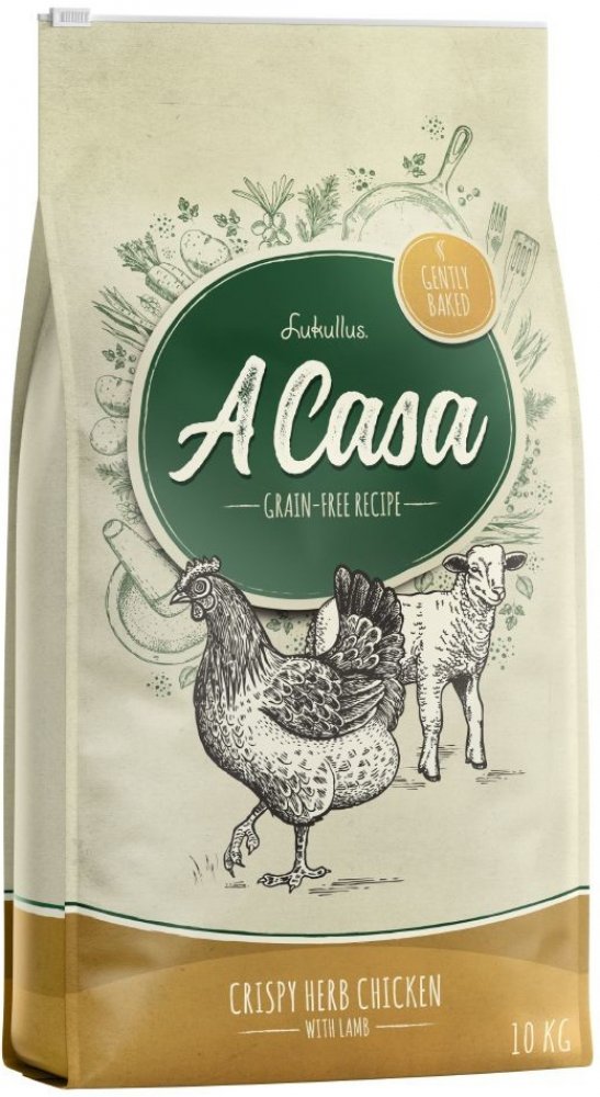 Lukullus A Casa pro mlsné jazýčky jako doma připravené. Bezobilná úprava s pečlivě zvolenými složkami a pozvolným pečením v peci, tak vznikají jedinečné, křupavé granule, které Váš pes v misce ocení, neboť chutnají jako doma připravené. Lukullus A Casa křupavé kuře s bylinkami je složeno z jemného, čerstvého kuřecího masa a chutného jehněčího spojených se superpotravinami: mrkví, fazolemi a borůvk...
