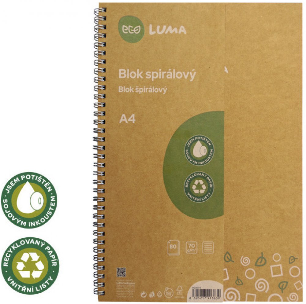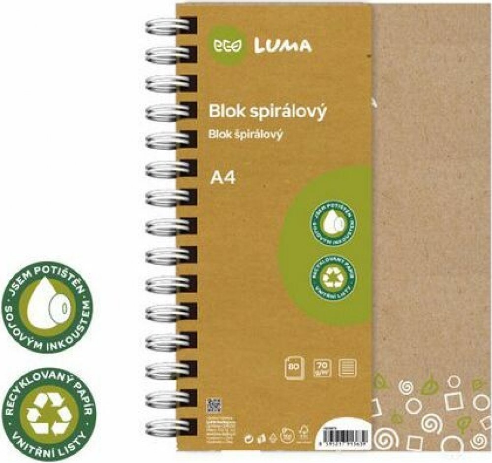 Spirálové bloky s listy z recyklovaného papíru.Potištěno sójovým inkoustem.Gramáž: 70g/m2.Cerifikace FSC.Možnost výběru z formátu A4 nebo A5.