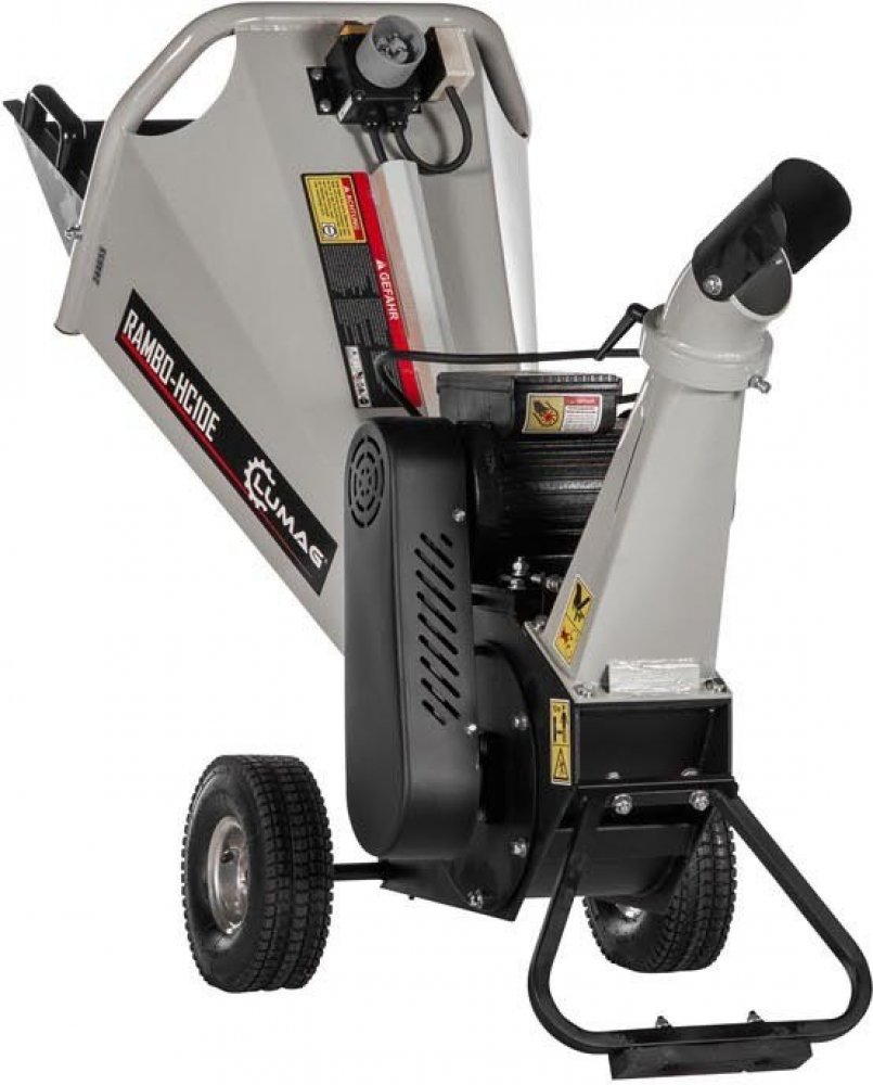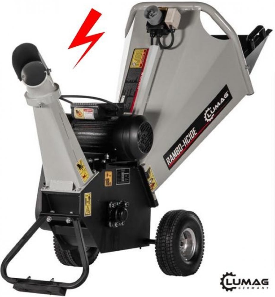 Válcový, max. průměr větve 50 mm, příkon 2200 W, hmotnost 100 kg, integrovaný podvozek. Elektrický štěpkovač dřeva Lumag RAMBO HC10E Elektrický štěpkovač HC10E je ideální ke kompostování či mulčování zahradního a dřevního odpadu. Tuto dřevní štěpku lze využít pro topení, k mulčování dřevin a dále i do kompostů. Díky vysoce výkonnému elektromotoru motoru s výkonem 2.2 kW má drtící jednotka sílu, která drtí větve až do průměru 50 mm. Integrovaný podvozek pro snadnou manipulaci a přepravu. Rozměry (d x š x v…
