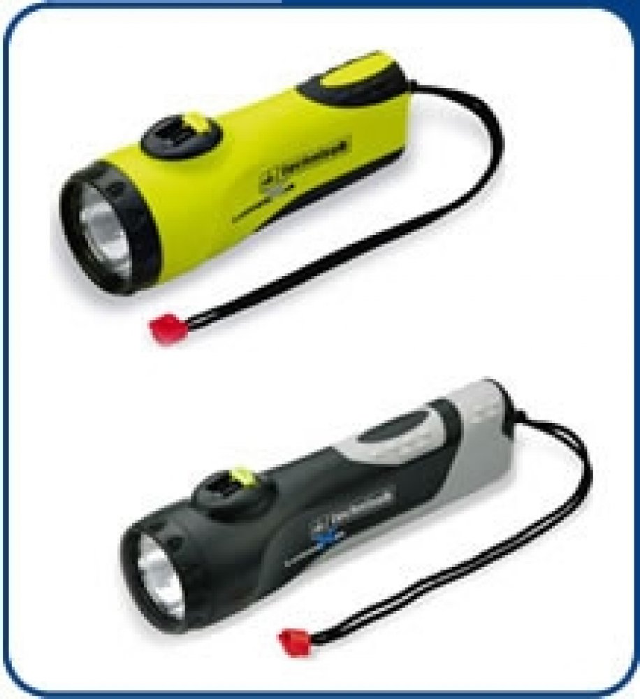 Navržené pro uložení do kapsy kompenzátoru vztlaku, vypínač On-Off (Zap/Vyp) je díky novému posuvnému mechanismu ovládaný palcem, bez ztráty kontaktu se svítilnou i při navlečených rukavicích.