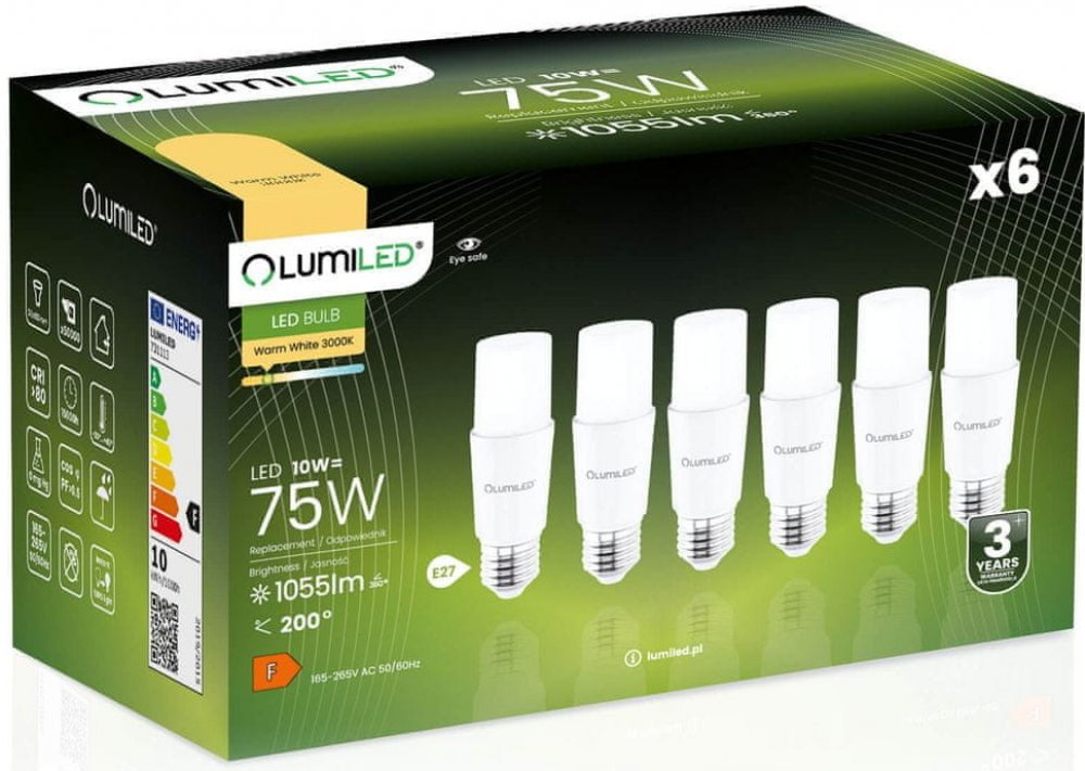 Sada 6x LED žárovek renomované značky LUMILED s paticí E14 a výkonem 10 W je vynikající náhradou za tradiční žárovky o výkonu 75 W a zároveň nabízí úsporu energie a delší životnost. Vyzařuje světlo o světelném toku 1055 lumenů a teplé barvě 3000K, díky čemuž je ideální pro osvětlení interiérů, kde je vyžadována jemná, příjemná barva světla. Úhel svícení 200° umožňuje široké rozptýlení světla a účinně osvětluje místnost. Díky vysoké kvalitě zpracování má životnost až 15 000 hodin, což se což se promítá do dlouholetého používání. Navíc pracuje v širokém rozsahu napětí 165-265 V a je přizpůsobena pro použití při okolních teplotách od -20 °C do +40 °C. Ideální volba pro lidi, kteří oceňují úsporu energie a péči o životní prostředí.