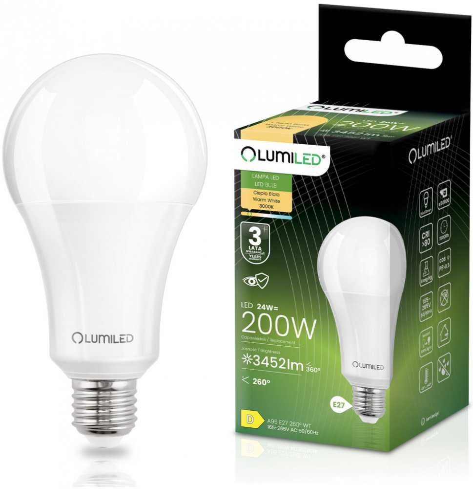 LED žárovka E27 A95 24W = 200W 3452lm 3000K Teplá 260° CCD LUMILED