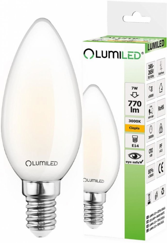 Obohaťte svůj interiér o hřejivé světlo, které kombinuje nadčasový vzhled tradičních svíčkových žárovek s nejmodernější úspornou technologií. Tento světelný zdroj je ideálním řešením pro každého, kdo hledá rovnováhu mezi estetikou a vysokou efektivitou.Designová elegance s technologií FilamentDíky inovativní technologii Filament vypadá tento světelný zdroj skvěle i ve svítidlech, kde je žárovka přímo viditelná. Konstrukce s čirým sklem a uspořádáním LED vláken zajišťuje plnohodnotný vyzařovací úhel 360°, čímž eliminuje stíny a rovnoměrně osvětluje celou místnost. Tvar B35 (svíčka) je klasickým prvkem, který dodá šmrnc lustrům i nástěnným lampám.Maximální úspora a špičkový výkonTato LED žárovka od renomovaného výrobce LUMILED je navržena tak, aby nahradila standardní 60W žárovku, přičemž její vlastní spotřeba je pouhých 7W. To představuje výrazné snížení nákladů na elektrickou energii při zachování vysokého světelného toku 806 lumenů. Teplota barvy 3000K (teplá bílá) vytváří útulnou a relaxační atmosféru, která je ideální pro obývací pokoje, ložnice nebo odpočinkové zóny.Klíčové vlastnosti a technické parametry: Patice: Standardní závit E14 (malý závit). Světelný tok: 806 lm pro jasné a čisté osvětlení. Barva světla: 3000K (příjemná teplá bílá). Náhrada: Efektivně nahrazuje klasickou 60W žárovku. Vzhled: Čiré sklo a tvar svíčky (B35). Úhel vyzařování: Plných 360 stupňů pro dokonalý rozptyl světla.Univerzální využití v domácnostiVzhledem k oblíbené patici E14 najde tento produkt uplatnění v široké škále svítidel. Je perfektní volbou pro víceramenné lustry, designové lampičky na nočních stolcích nebo dekorativní nástěnná svítidla. Značka LUMILED je zárukou kvality a dlouhé životnosti, což z této žárovky činí investici, která se vám vrátí v podobě nižších účtů za elektřinu a dlouhodobé spolehlivosti.