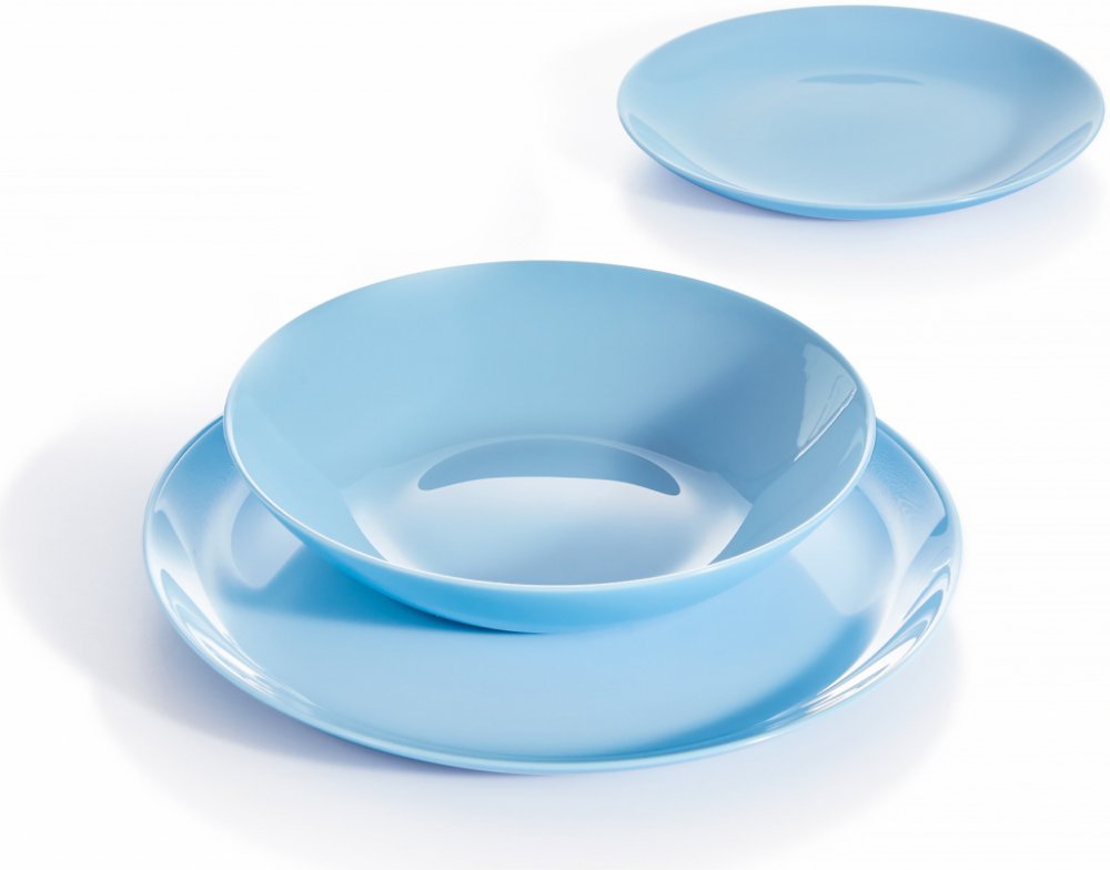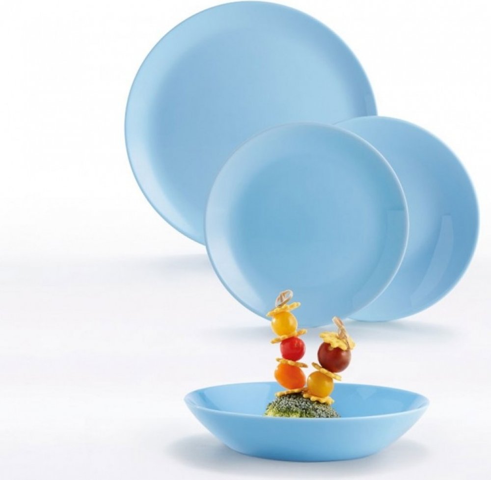 Barvu letní oblohy bez mráčku má jídelní souprava Diwali Light Blue proslulého francouzského výrobce Luminarc. Talíře jsou vyrobeny z tvrzeného opálového skla a díky tomu lépe odolávají nárazům. Vhodné jsou pro použití v mikrovlnné troubě i myčce na nádobí. Jídelní souprava je zcela hladká, bez dekoru a potisku. Svojí blankytnou barvou evokuje souprava pocity při letní, sluneční pohodě. Souprava o...