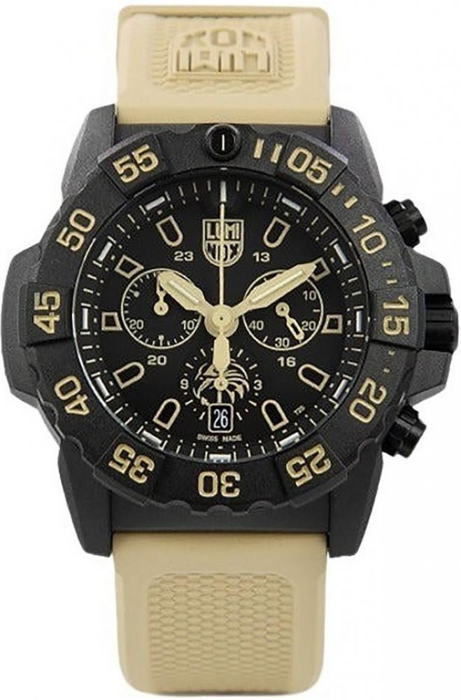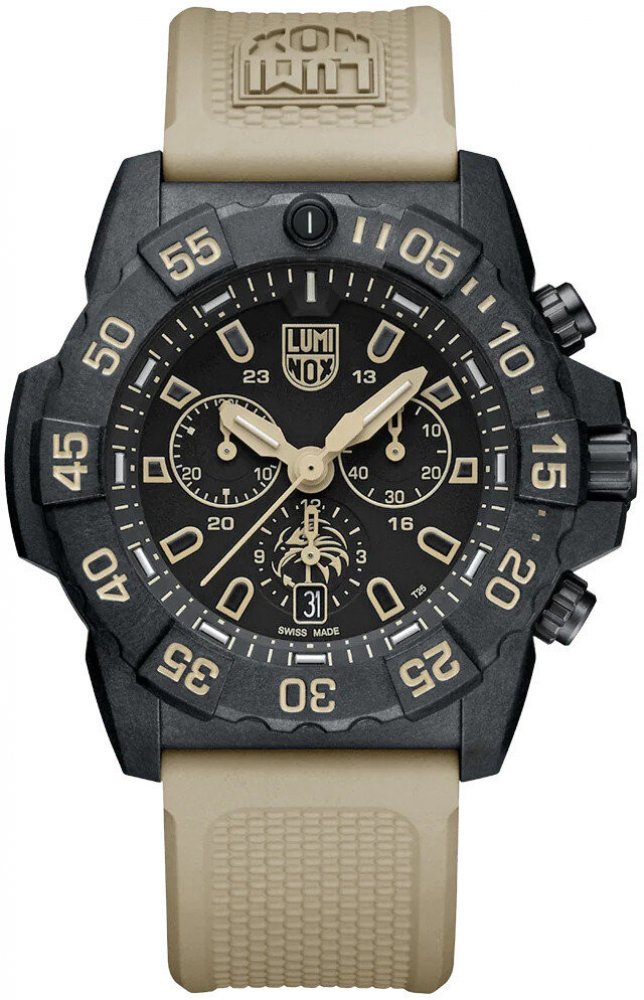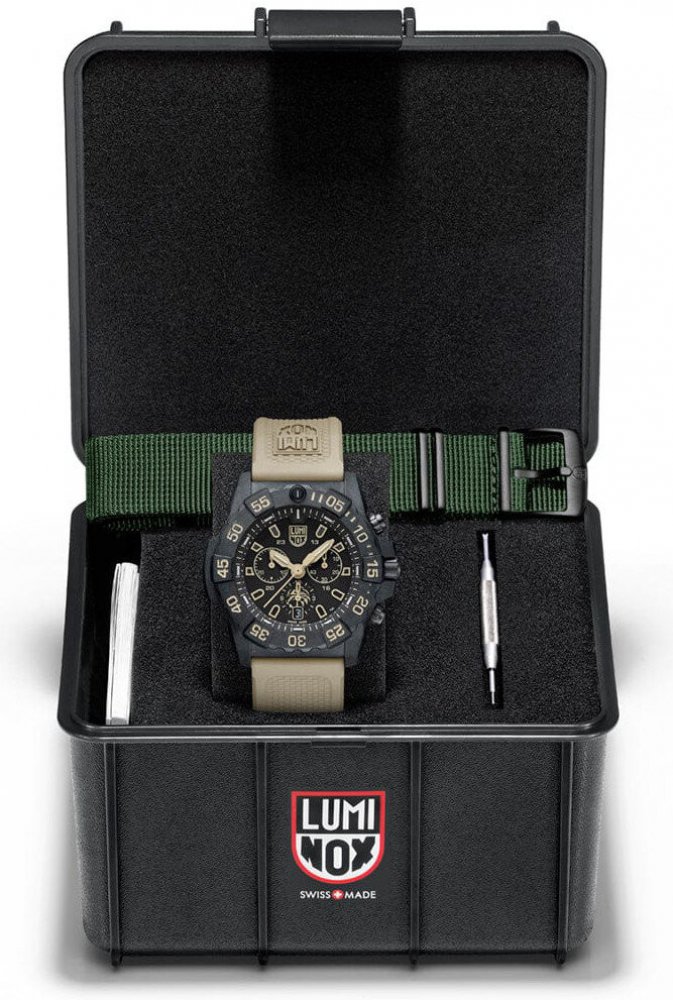 null Hodinky Luminox' Navy SEAL Foundation jsou vybaveny pouzdrem CARBONOX™ a jednosměrně otočným rámečkem. Hodinky jsou baleny v sadě s možností volby pryžového řemínku pískové barvy nebo tmavě zeleného řemínku, čímž vzdávají hold různorodým podmínkám, ve kterých pracují, ať už jde o drsný písek pouště nebo drsnou vlhkost džungle. Na ciferníku se na nejspodnějším subciferníku nachází logo nadace ...