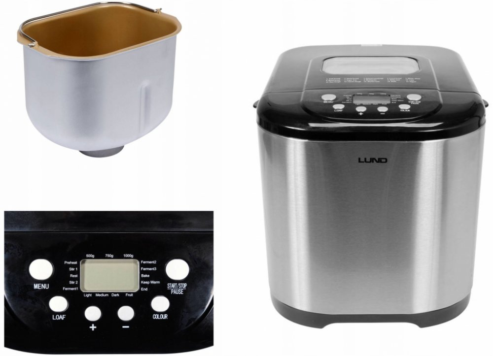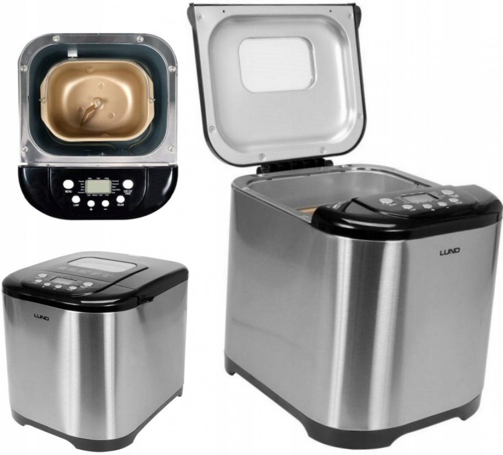 Domácí pekárna značky Lund s 15 automatickými programy pro přípravu těsta, pečení chleba a přípravu jogurtu. Kromě programu si uživatel navolí i velikost chleba a stupeň zhnědnutí kůrky. Další výhodou je funkce odloženého startu, která umožňuje naprogramovat zařízení tak, aby nechalo chléb kynout během přípravy pokrmu.