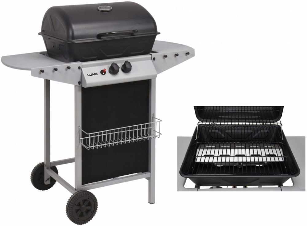 Plynový gril 2 hořáky - 5,5 kW | Lund 99644 Funkční a kompaktní plynový gril se 2 hořáky pro přípravu jídla pod širým nebem. Vlastnosti produktu: kryt s teploměrem pro rychlejší grilování a ochranu před větrem. Kouř z jídel navíc dodá patřičnou chuť a vůni. zapalovač umístěný na boku předního panelu odolný rošt a topný rošt vyrobený z oceli pokryté porcelánovým smaltem počet hořáků: 2 , každý s vý...