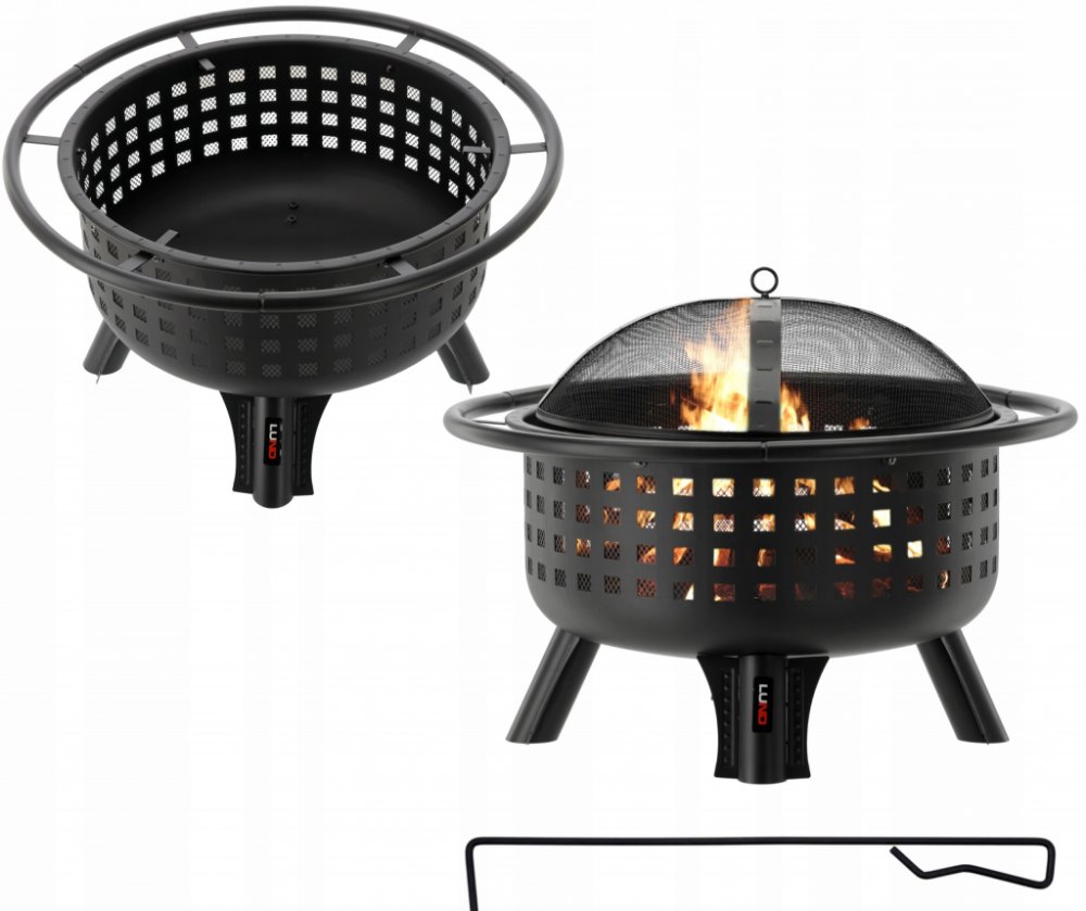 - kryt: ocelový se síťovinou potaženou smaltem odolným vůči vysokým teplotám. Víko omezuje pronikání jisker z ohně ven