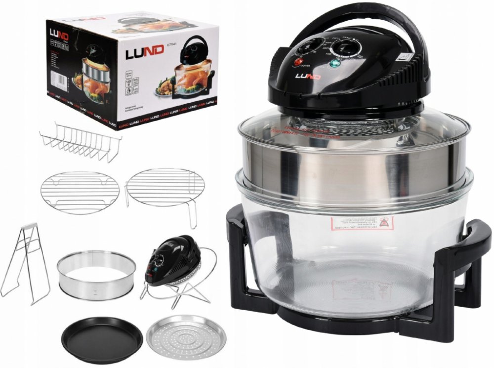 Technická data napájení 230V příkon 1400W regulace teploty plynulá časovač 0-60 min. objem 12l (17l)