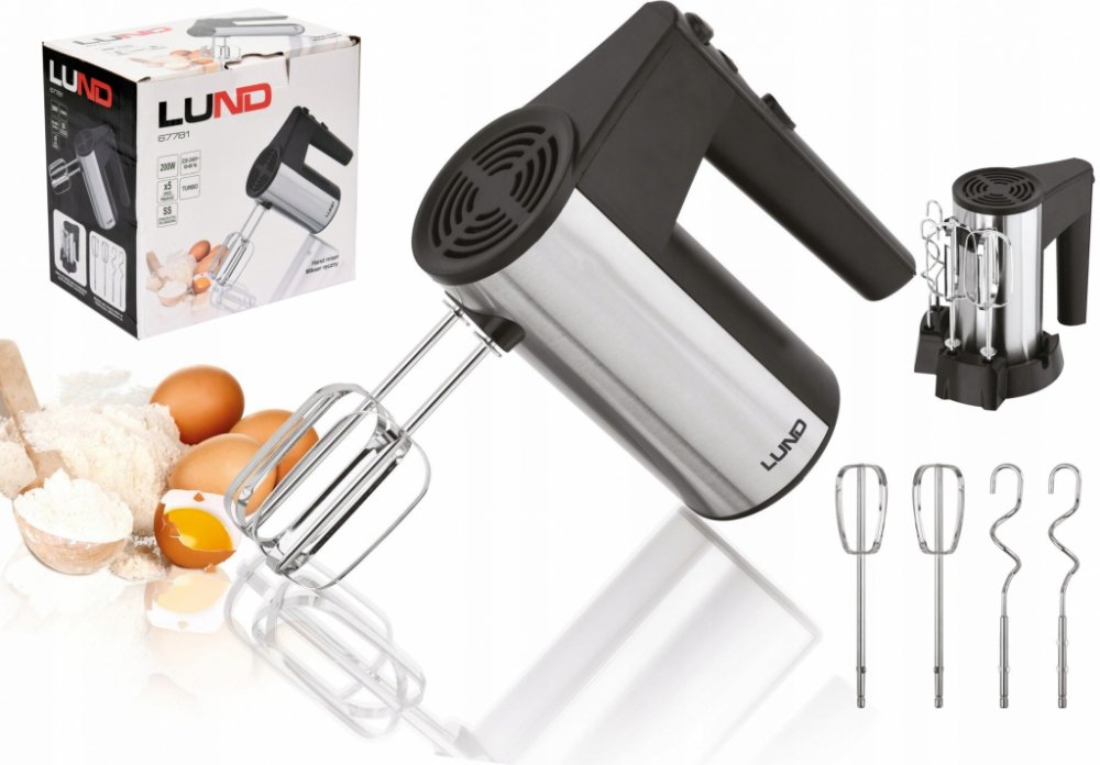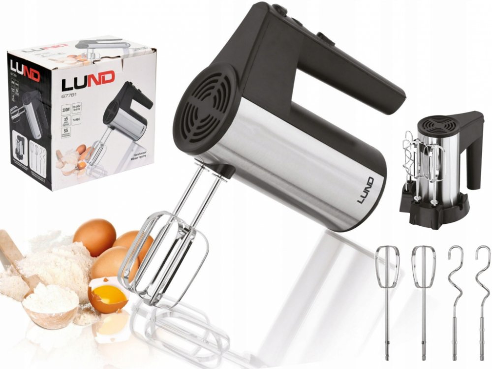 Balení obsahuje kromě mixéru pár metel a pár hnětacích nástavců.