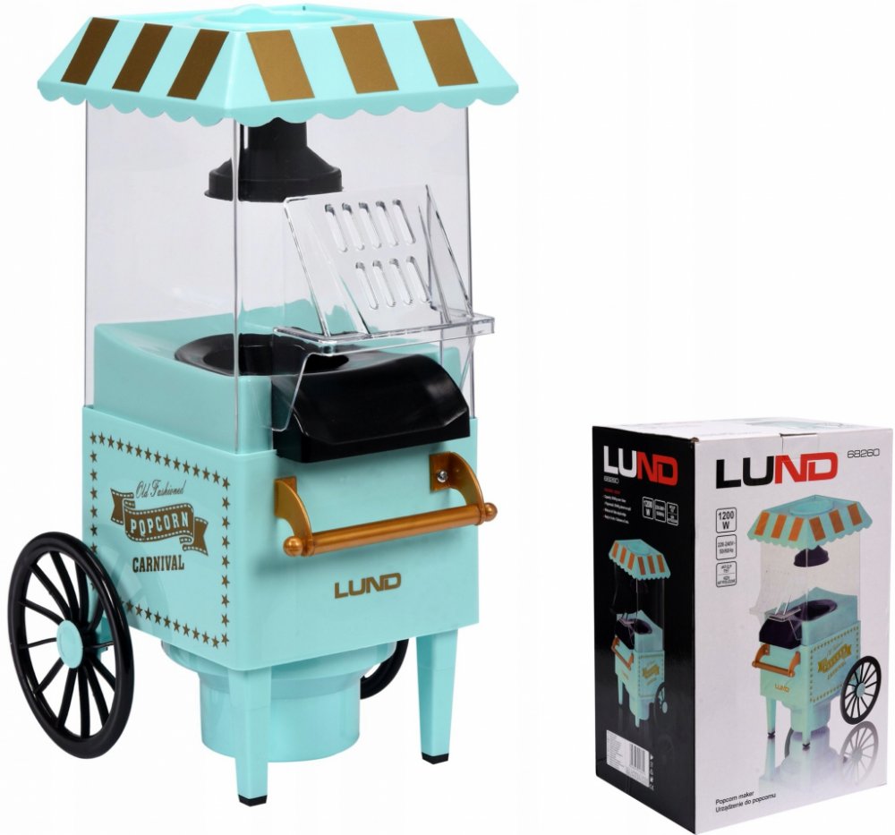 Dopřejte si jedinečný filmový večer s rodinou v originálním retro stylu. Užijte si vůni čerstvě připraveného popcornu jako v kině! Tento stylový retro stroj na popcorn v designu vozíku promění každou oslavu, večer s přáteli nebo filmový maraton v nezapomenutelný zážitek. Během pár minut připravíte až 60 g křupavého popcornu – a to zcela bez tuku, pouze pomocí horkovzdušné cirkulace. Skvělá volba pro všechny, kdo si rádi dopřejí domácí popcorn bez zbytečného oleje, kalorií a nepořádku v kuchyni. Stačí nasypat kukuřici do zásobníku, zapnout a během 3 minut máte hotovo! Zábava i styl v jednom Retro design vozíku připomíná klasické prodejní stánky z amerických kin. Díkysvé barvě, kolečkům a elegantnímu tvaru působí velmi efektně i jako dekorace na oslavách, večírcích či svatbách. Vhodný je také jako originální dárek pro filmové fanoušky, děti i gurmány. Vlastnosti a výhody popcornovače - Rychlá příprava: 50–60 g popcornu hotovo za 3 minuty - Bez tuku: zdravější příprava pomocí horkovzduchu - Bezpečný provoz: neklouzavé nožičky pro stabilitu - Retro design: stylový doplněk pro každou kuchyň či párty - Snadná údržba: žádný olej ani složité čištění - Skvělý výkon: příkon 1200 W zaručuje rychlý ohřev Technické parametry - Příkon: 1200 W - Rozměry zařízení: 17 × 38 × 22,5 cm - Rozměry balení: 40,4 × 25,6 × 21 cm - Materiál: plast, kov - Neklouzavá kolečka zajišťují stabilitu přístroje - Zařízení je napájeno pomocí kabelu na 230 V Tip na dárek Tento stroj na popcorn je skvělým dárkem pro milovníky filmů, rodiny s dětmi nebo každého, kdo si rád zpestří večer domácím občerstvením. Hodí se k narozeninám, Vánocům i jako stylový doplněk na večírky.