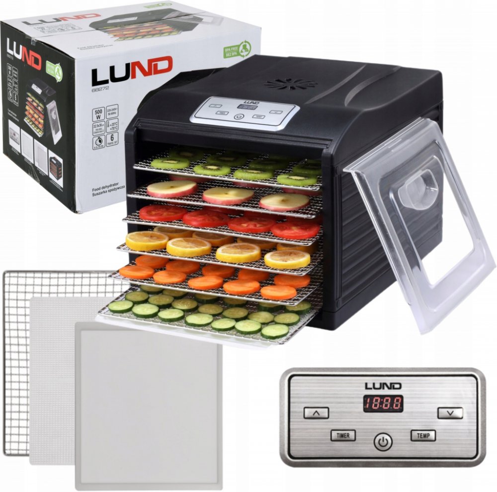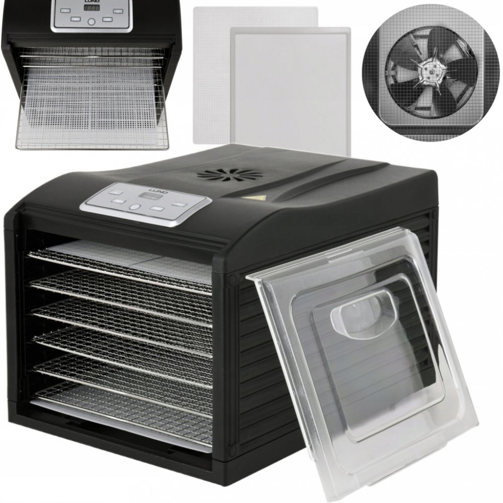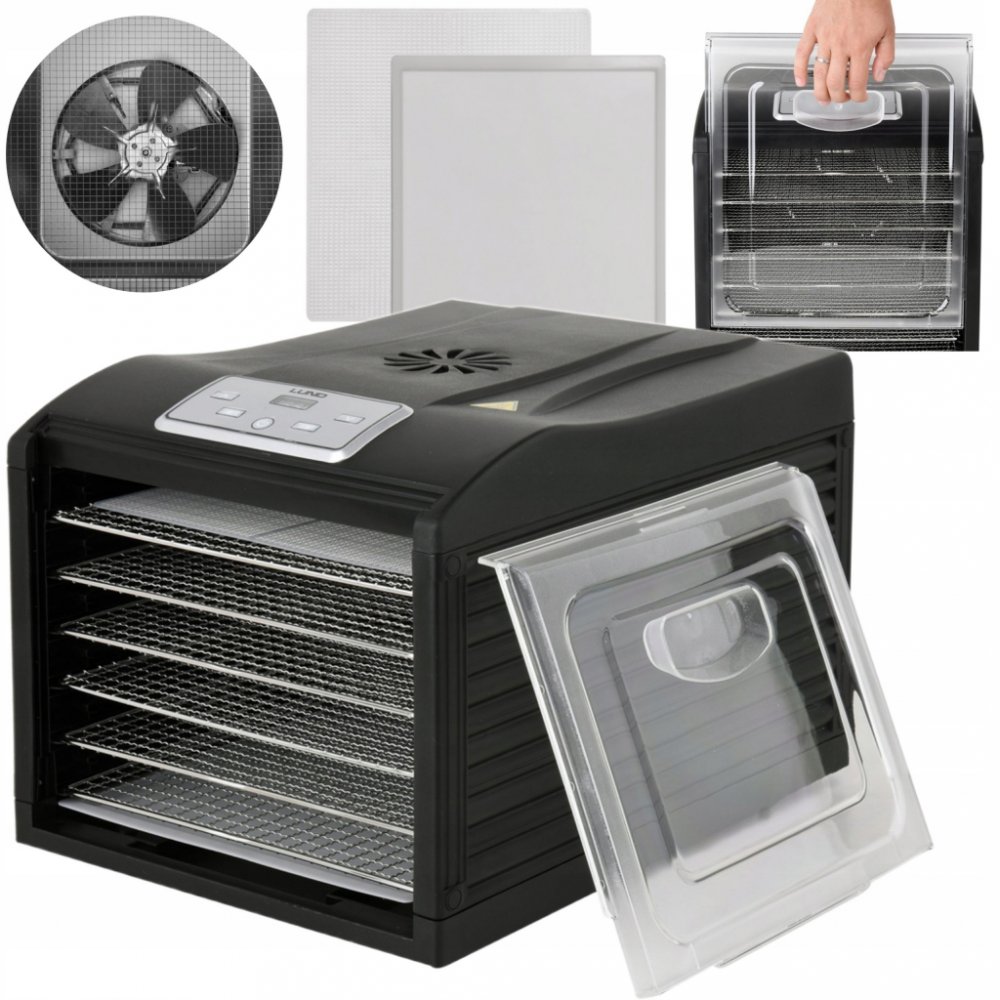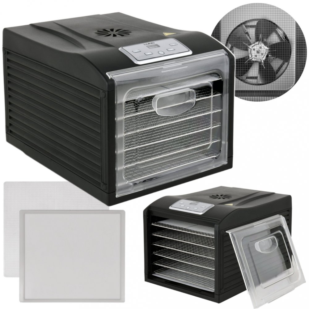 Segmentové uspořádání 6x prostorů zajistí možnost sušení několika rozdílných potravin na jednou.