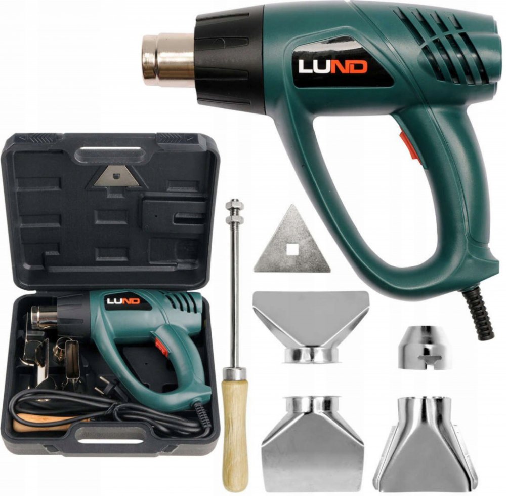 Opalovací pistole LUND o efektivním výkonu až 2000W při teplotě až 550 °C.