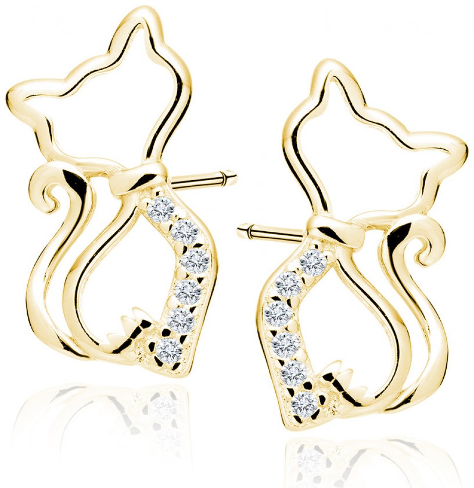 Lunica Stříbrné náušnice ZLATÁ KOČKA 0769