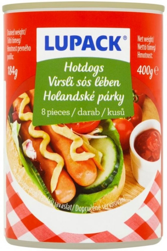 Konzervované párky vhodné na přípravu oblíbených hot dogů.TipPárky by se měly ohřívat alespoň pět minut v probublávající vodě steplotou těsně pod bodem varu. Po vyjmutí a zlomení uprostřed by měl párek krásně křupnout.Hmotnost pevného podílu činí 184 g.VÝROBCEZvanenberg Food Group, Twentepoort Oost 5, 7609 RG Almelo, NizozemskoSKLADOVACÍ PODMÍNKYSkladujte v suchu.SLOŽENÍStrojově oddělené kuřecí maso 50, voda, strojně oddělené vepřové maso 16, vepřové maso 8, bramborový škrob, antioxidant: E116, trehalóza, kvasnicový extrakt, kouřové aroma, extrakt kořeni, aroma, dextóza, extrakt z čekanky, cukr, konzervant: E250.VÝŽIVOVÉ HODNOTY (NA 100G)Energetická hodnota822 kJEnergetická hodnota198 kcalTuky14.8 gZ toho nasycené mastné kyseliny5.1 gSacharidy4 gZ toho cukry0.1 gBílkoviny12 gSůl1.9 gOBSAH MASAObsah masa70 - 79